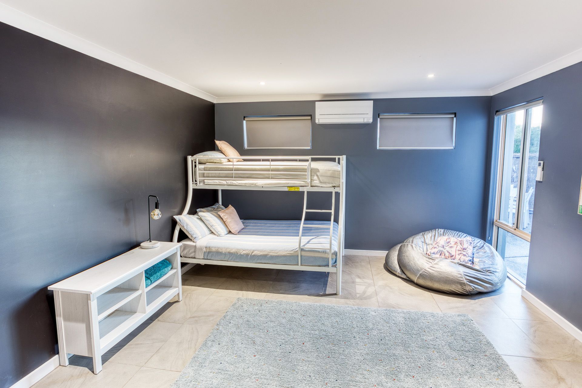 With 5 beautifully appointed bedrooms and two bathrooms, this home easily accommodates up to 10 guests. The master suite features a queen bed and private ensuite, and two additional queen bedrooms, a fourth bedroom with a bunk, and a fifth with two single beds make it ideal for families or groups of friends.