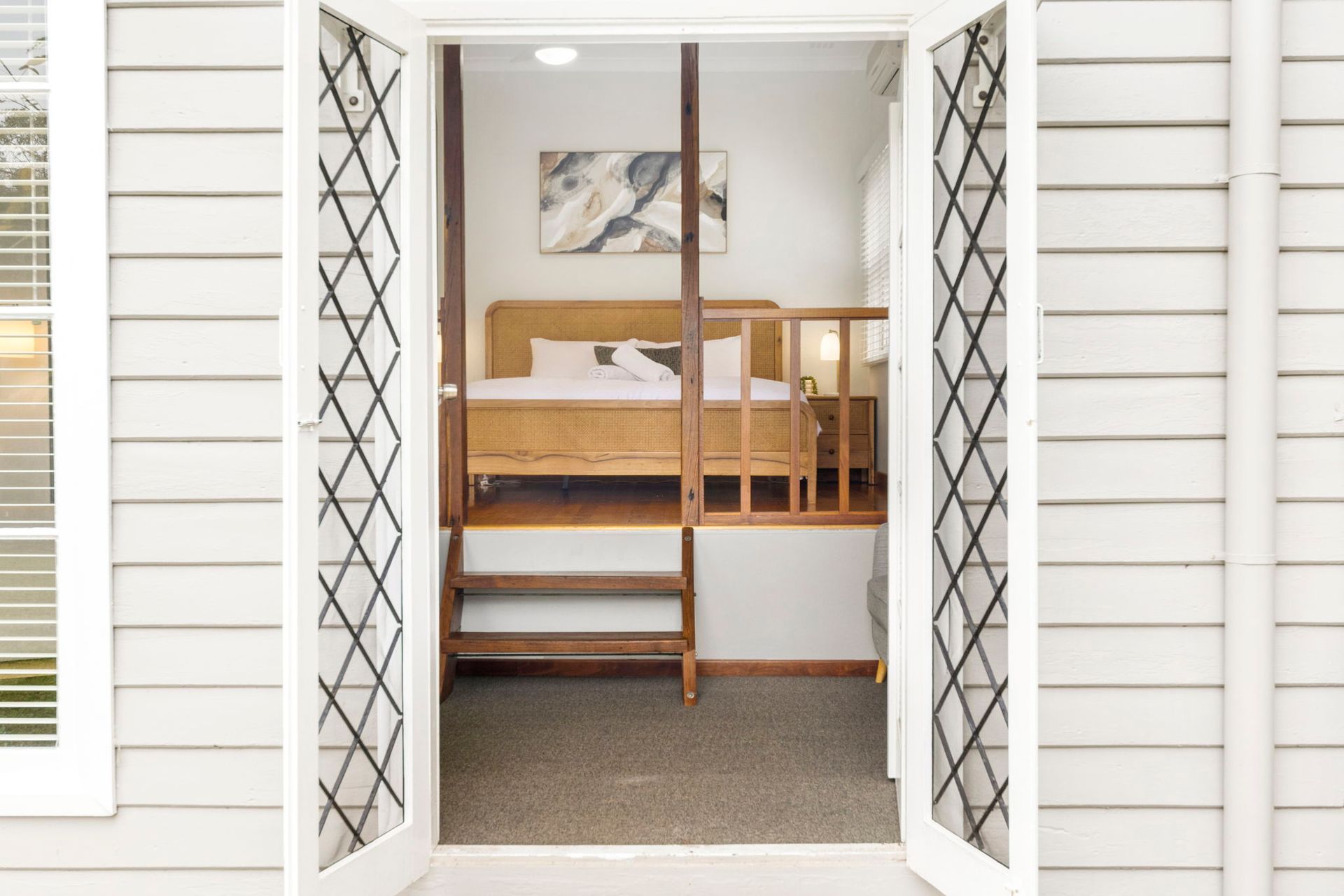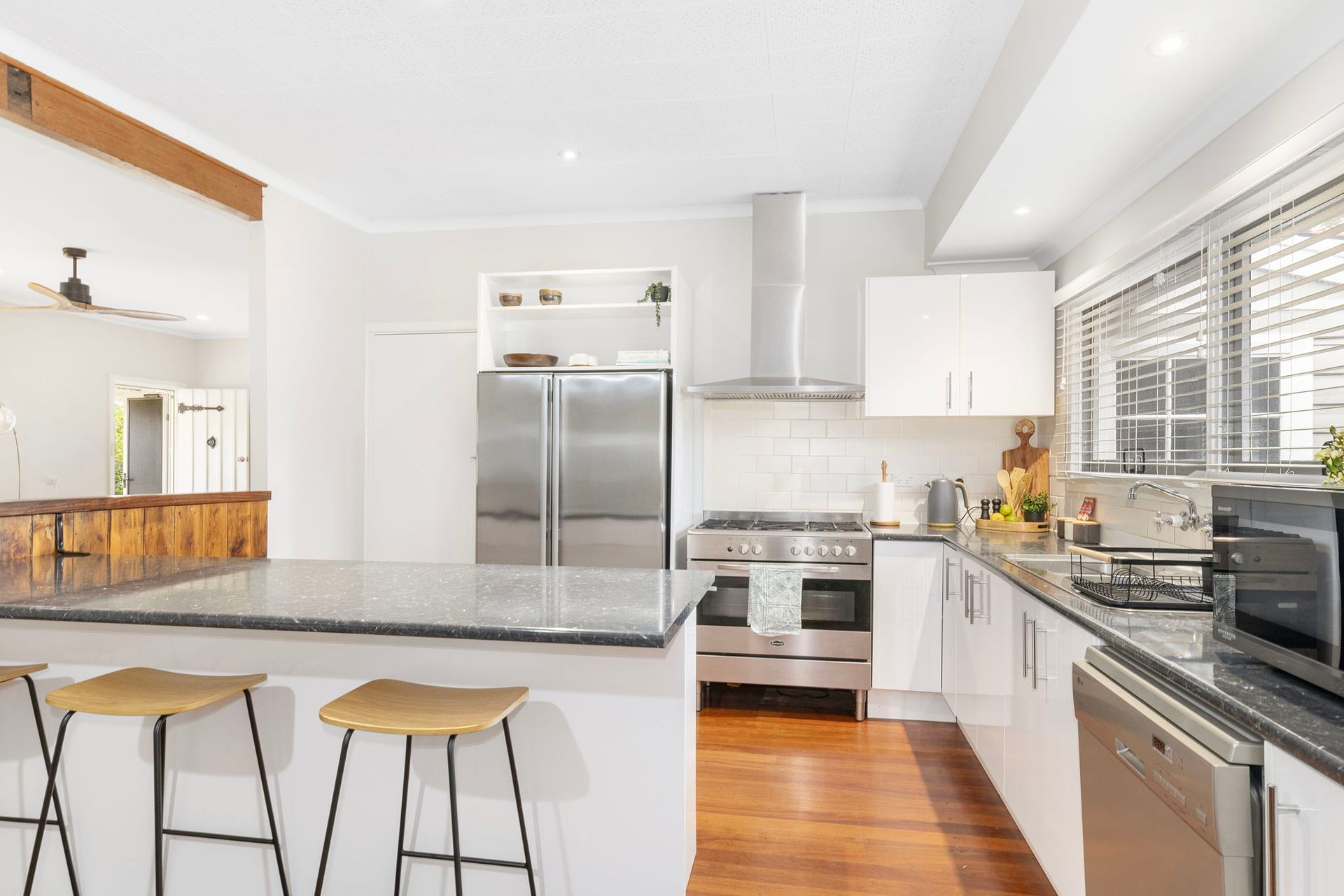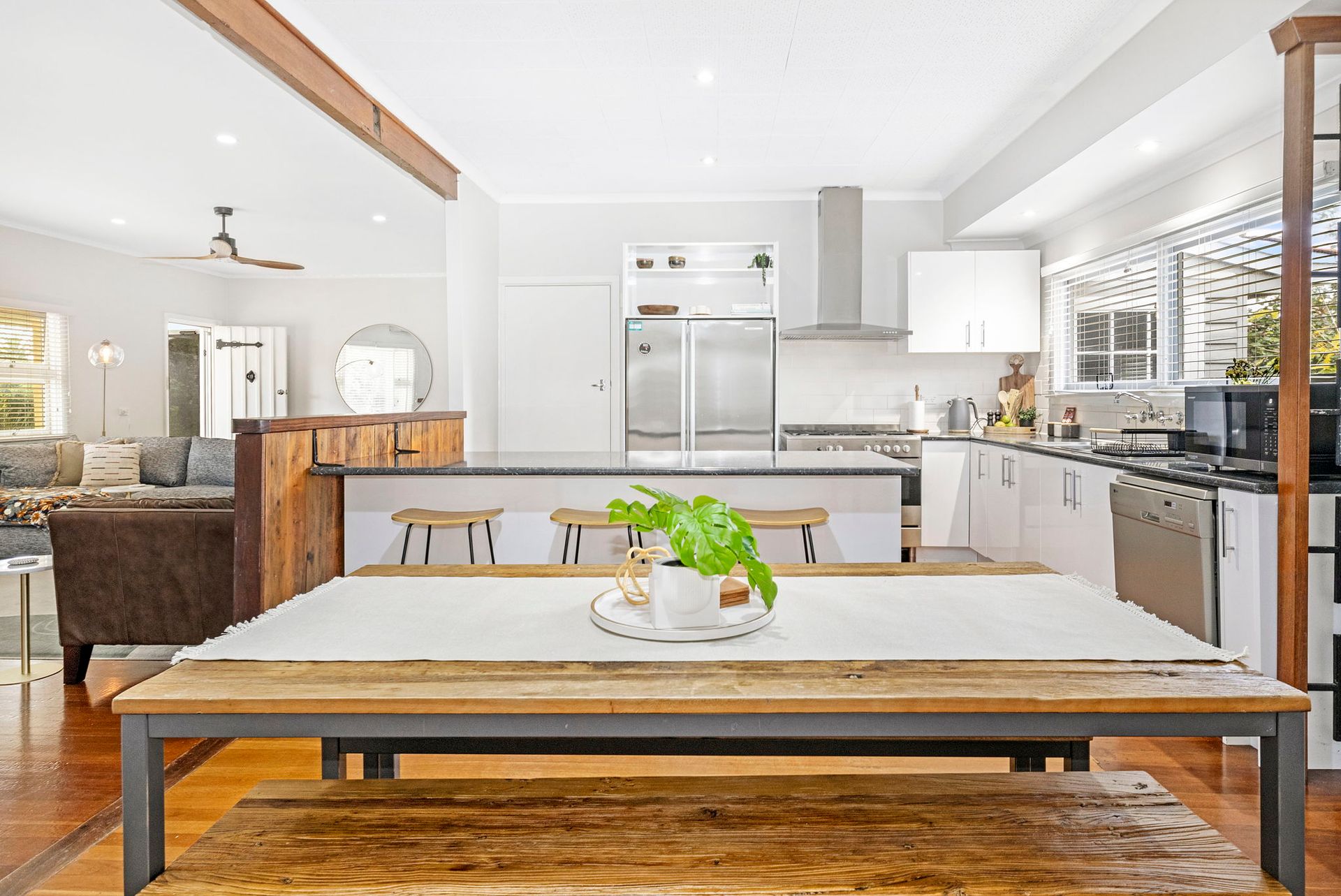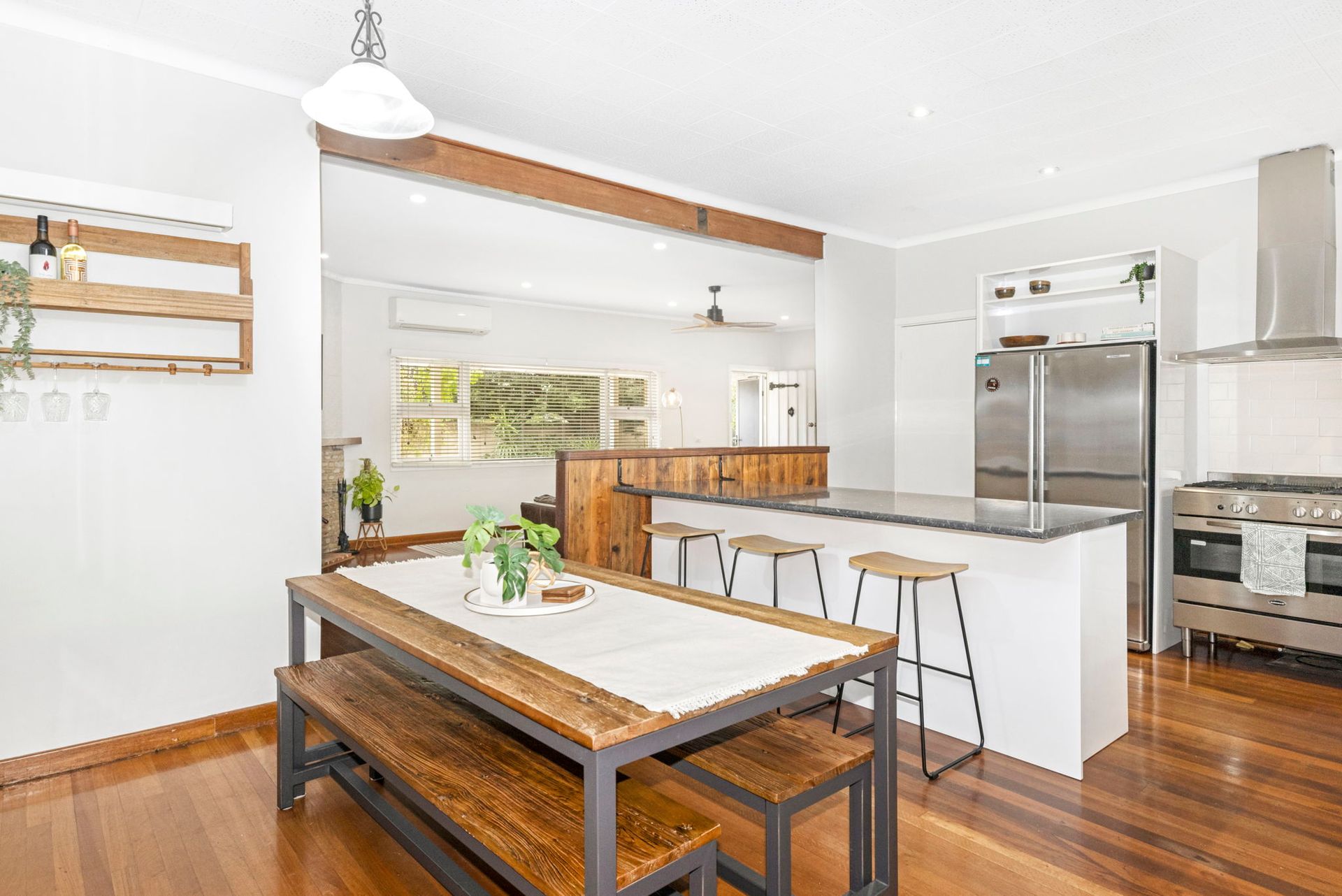 The older style cottage house has had a full facelift whilst still maintaining that old world charm, with added comforts, polished wooden floorboards through out and high ceilings. With a fully self-contained open-plan kitchen and dining area directly off the lounge allows everyone to feel included whilst having independent areas.