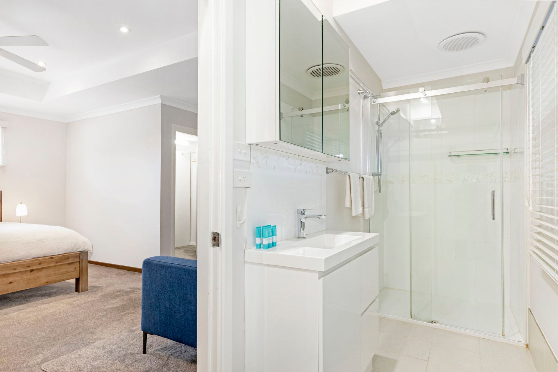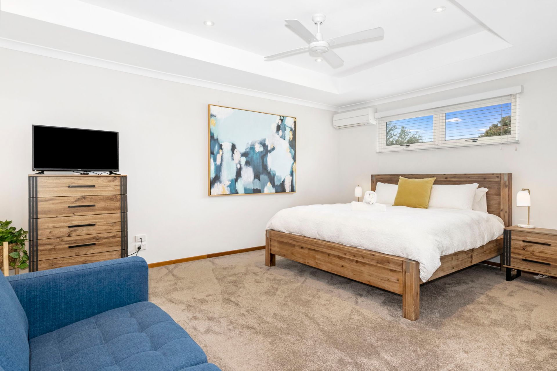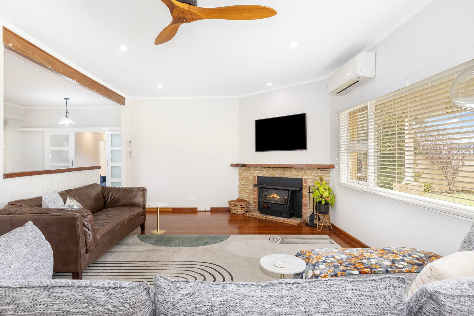 The main living area comprises a large comfortable lounge, flat screen TV, fireplace, ceiling fans as well as split system heating and cooling. The 2 master bedrooms and bedroom 4 have split system heating and cooling units along with fans to maintain comfort for all guests staying.