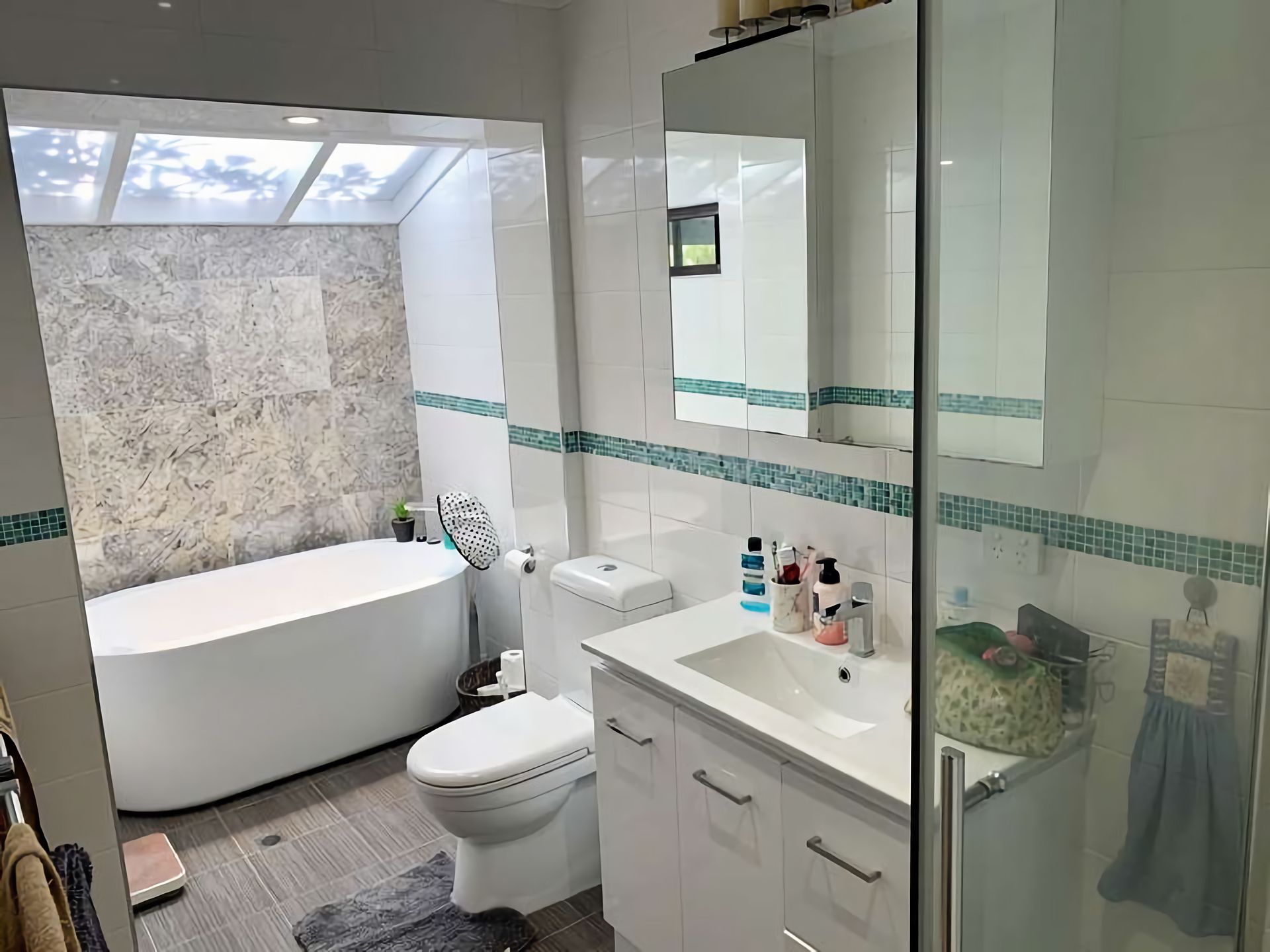 Step inside and enjoy the light-filled open-plan living area, a fully renovated kitchen with modern appliances, and elegant floor-to-ceiling tiled bathrooms. The home offers seamless indoor-outdoor living with a spacious grassed backyard and a private outdoor entertaining area — ideal for barbecues or unwinding after a day at the beach.