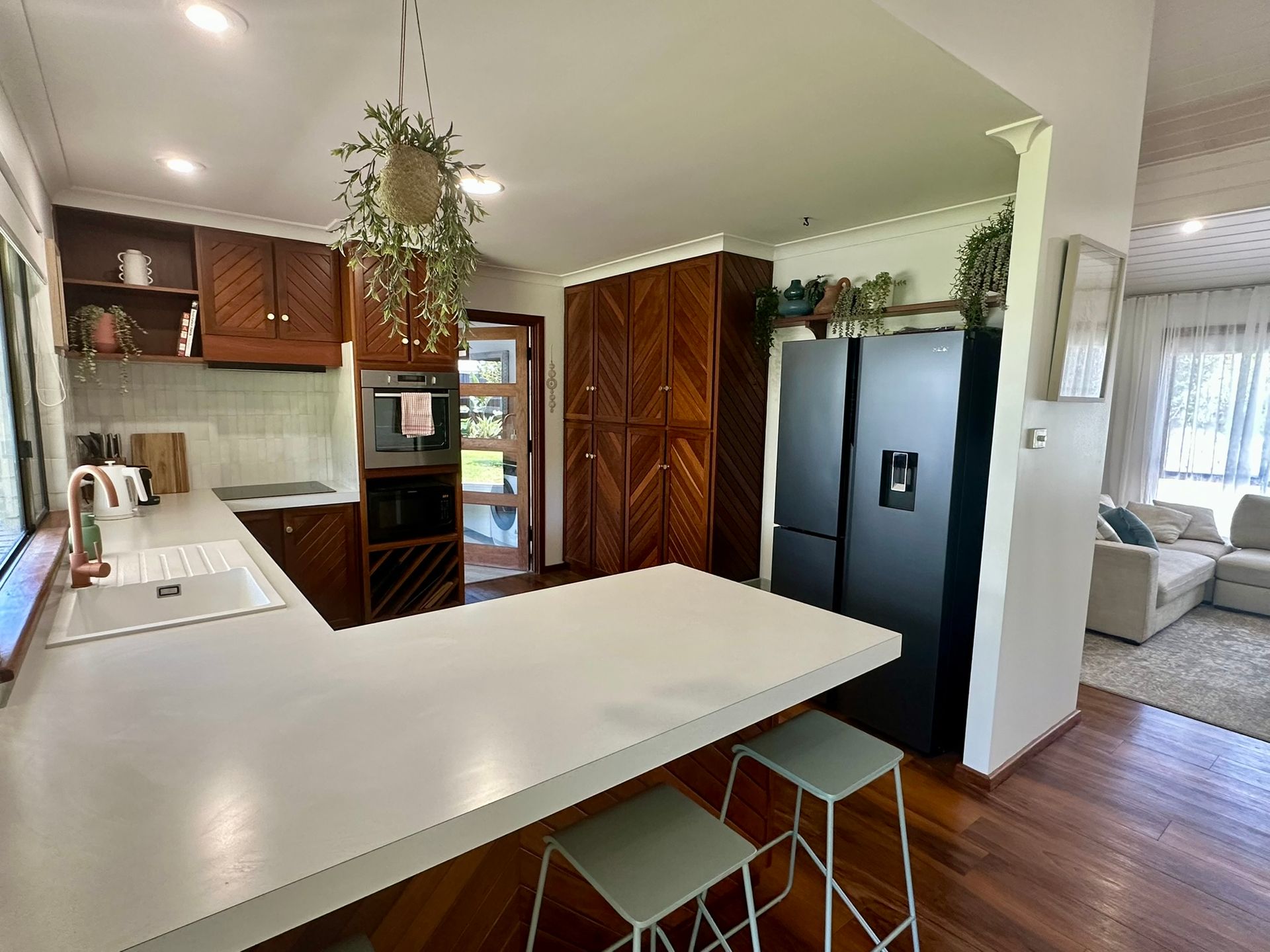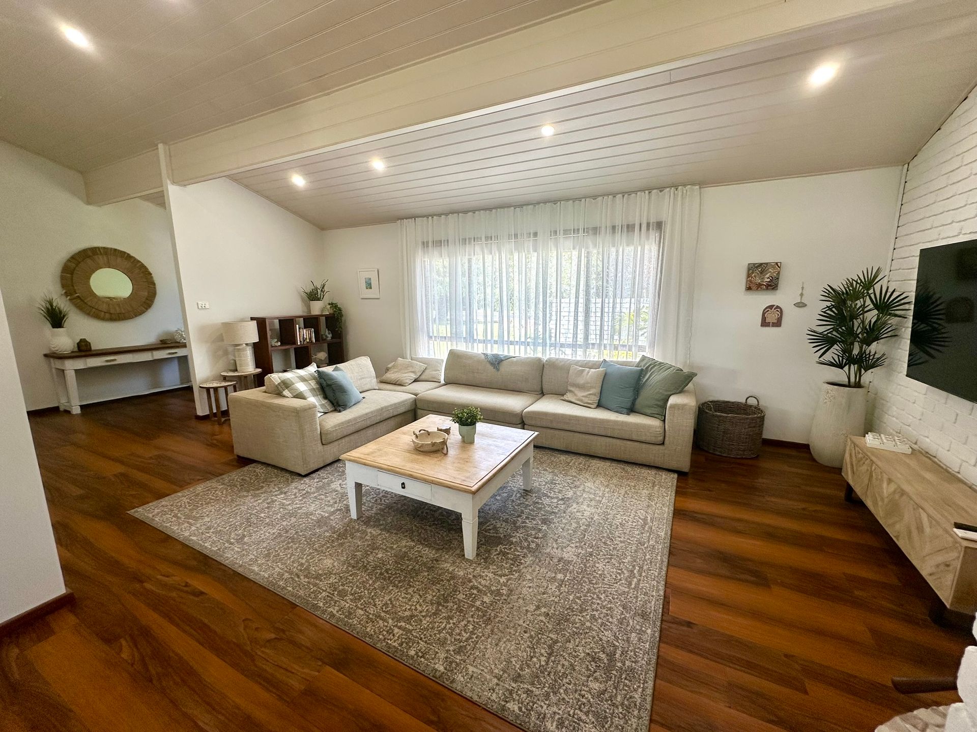 The spacious open-plan kitchen, living, and dining area boasts raised raked ceilings, creating a light-filled and airy atmosphere. Step outside to the large enclosed backyard and enjoy the expansive deck, complete with outdoor furniture, a dining area, and a BBQ – perfect for lazy afternoons and alfresco meals.