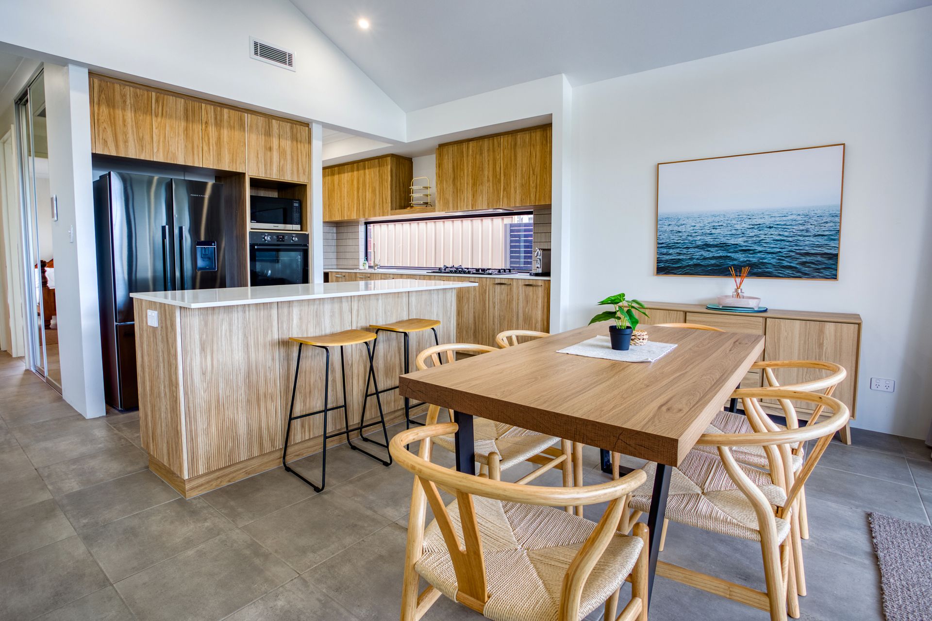 Casa Al Mare is perfect for families, couples, or friends looking for comfort and convenience. Inside, the home features a modern kitchen and a spacious open-plan living and dining area. Ducted air conditioning ensures year-round comfort, while thoughtful furnishings make the space welcoming and functional.