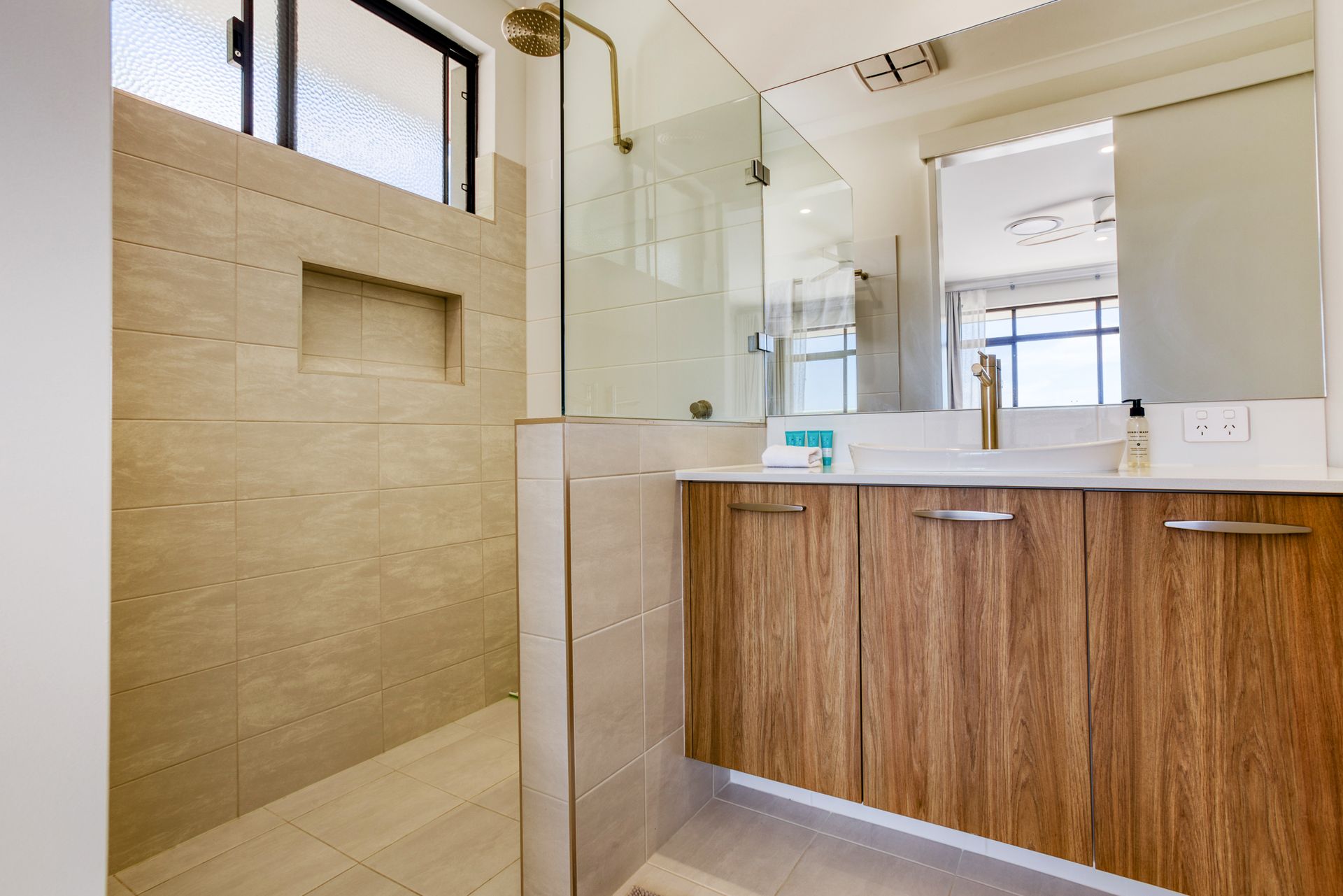 The home has three queen bedrooms. The master includes an ensuite with a shower, and all bedrooms feature ample storage, making it perfect for families or groups travelling together.
