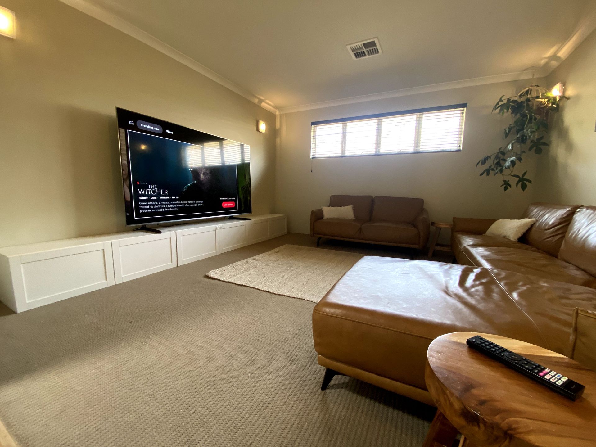 Enjoy modern conveniences with a 90-inch smart TV, free Wi-Fi, and air conditioning in every room. The outdoor area is perfect for entertaining, featuring a large BBQ, alfresco dining space, cubby house, and sandpit for the kids. Inside, you’ll find plenty of board games to keep everyone entertained.