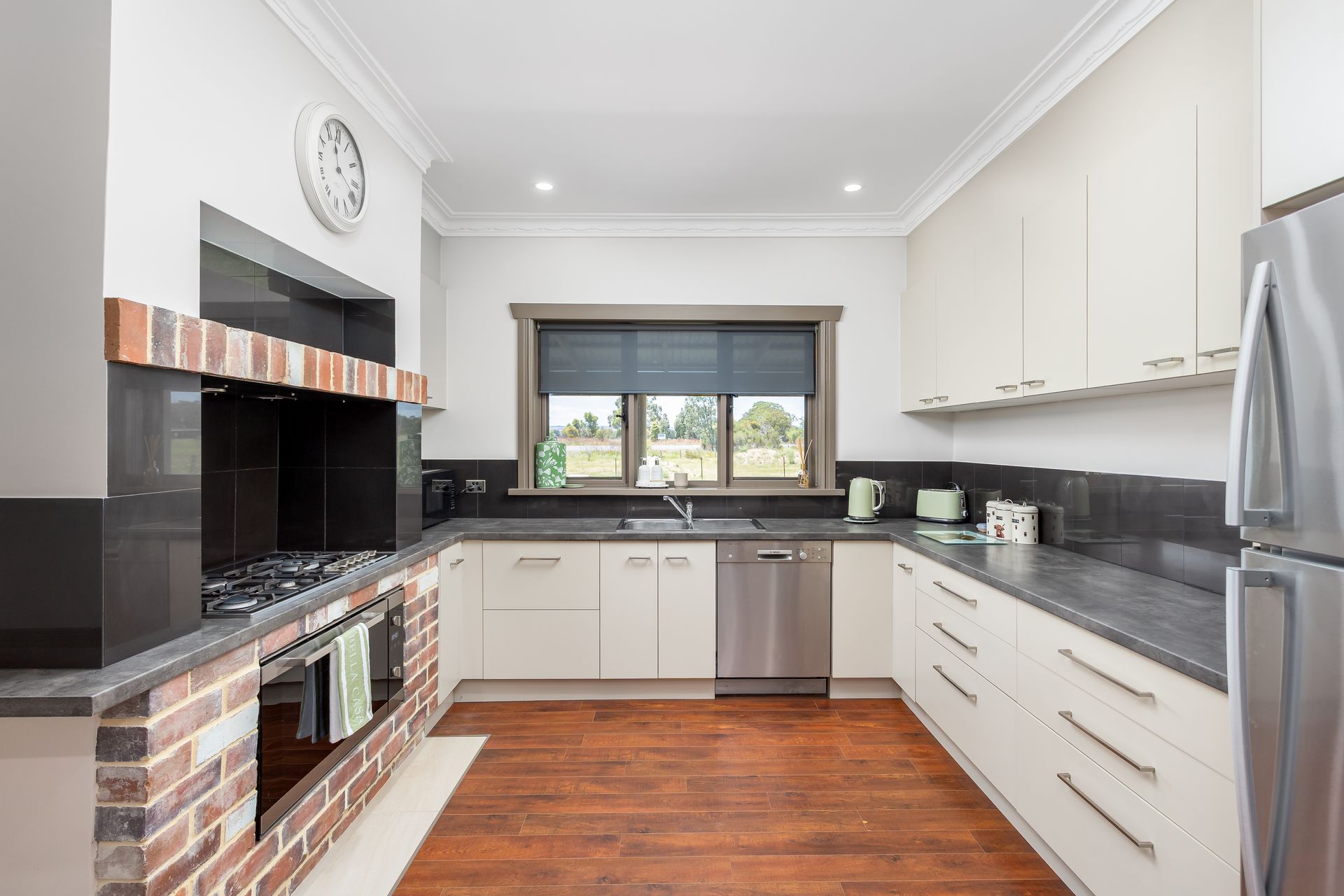 Outside, the property includes expansive lawns, fenced paddocks, and plenty of room for kids to play or adults to unwind. A large powered shed, rainwater tanks, and a bore highlight the property’s authentic country lifestyle.