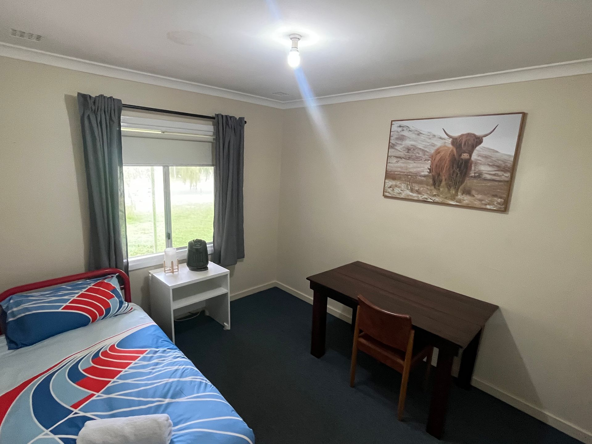 - 3.5 bedrooms, 1 King, 1 queen, 2 singles and a desk