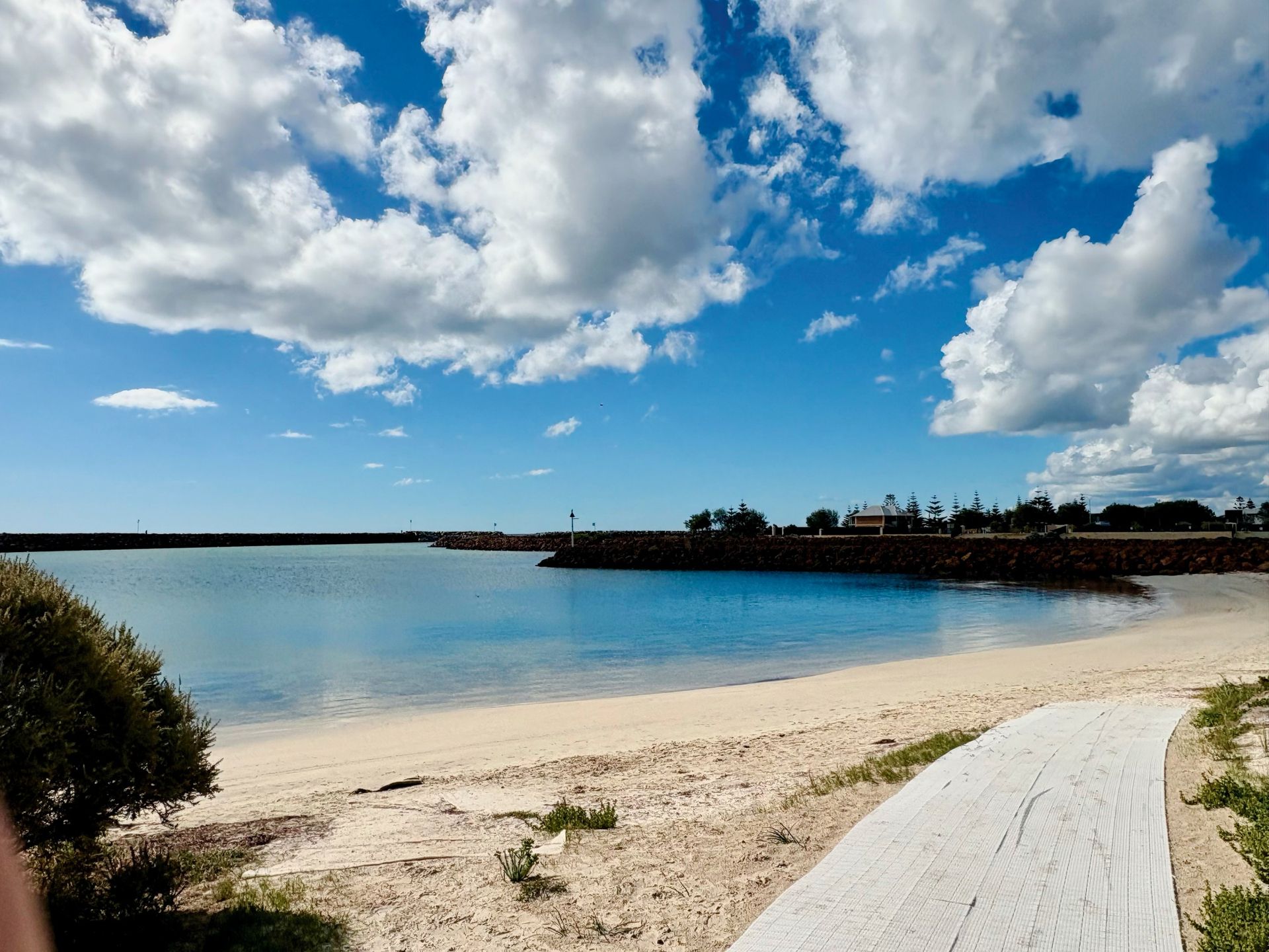 Just steps from your door is a hidden gem: a small, family-friendly beach tucked within the Port Geographe Marina. Stroll a little further and you'll find the main stretches of Geographe Bay within walking distance. There’s a bike rack out front for those bringing wheels, and plenty of free public parking directly opposite the apartment.