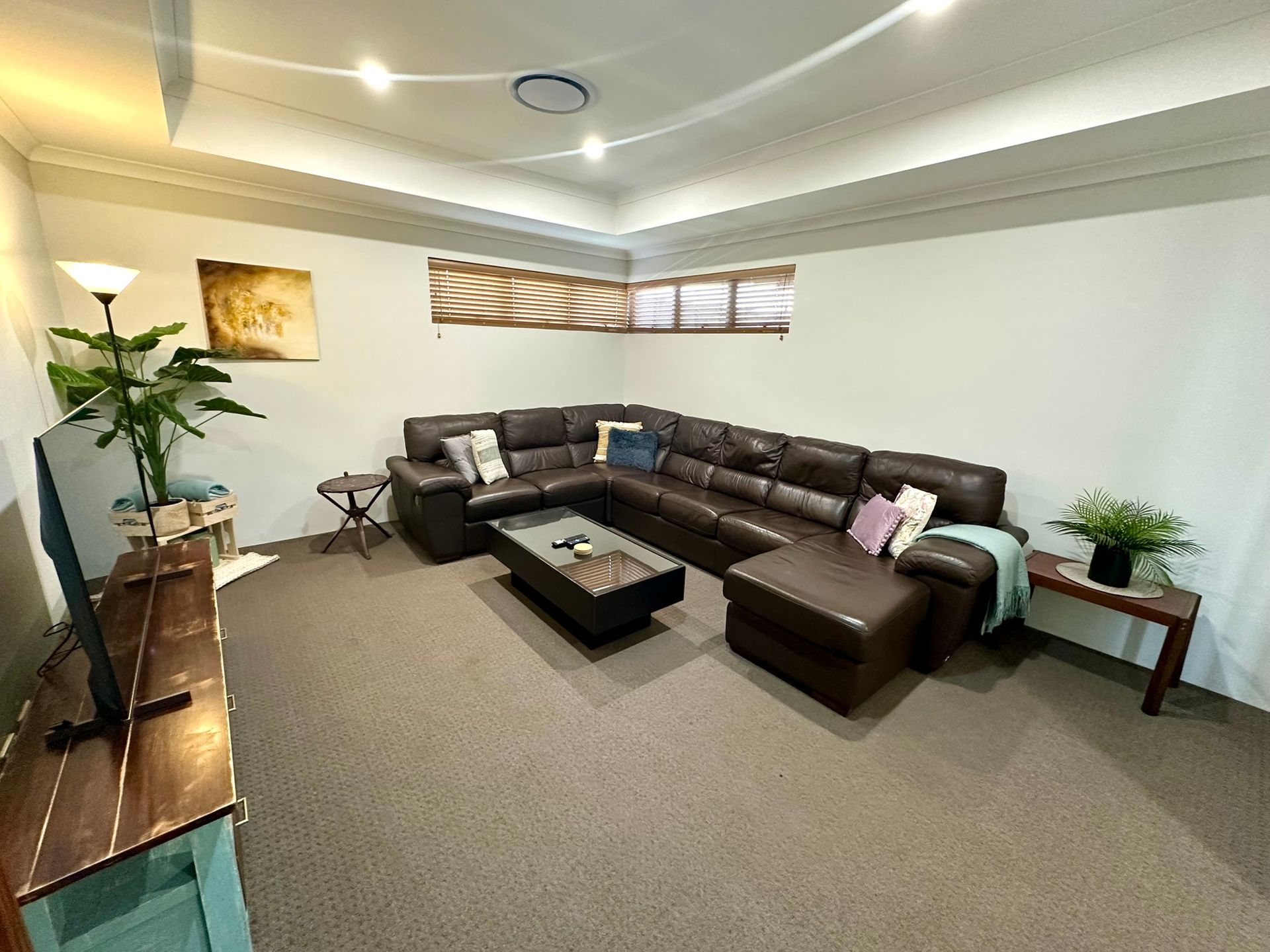 The property features four elegant bedrooms and two bathrooms, providing comfort and convenience for every guest. A separate theatre room with a large TV and an additional TV in the open-plan living area ensure plenty of entertainment options for everyone..