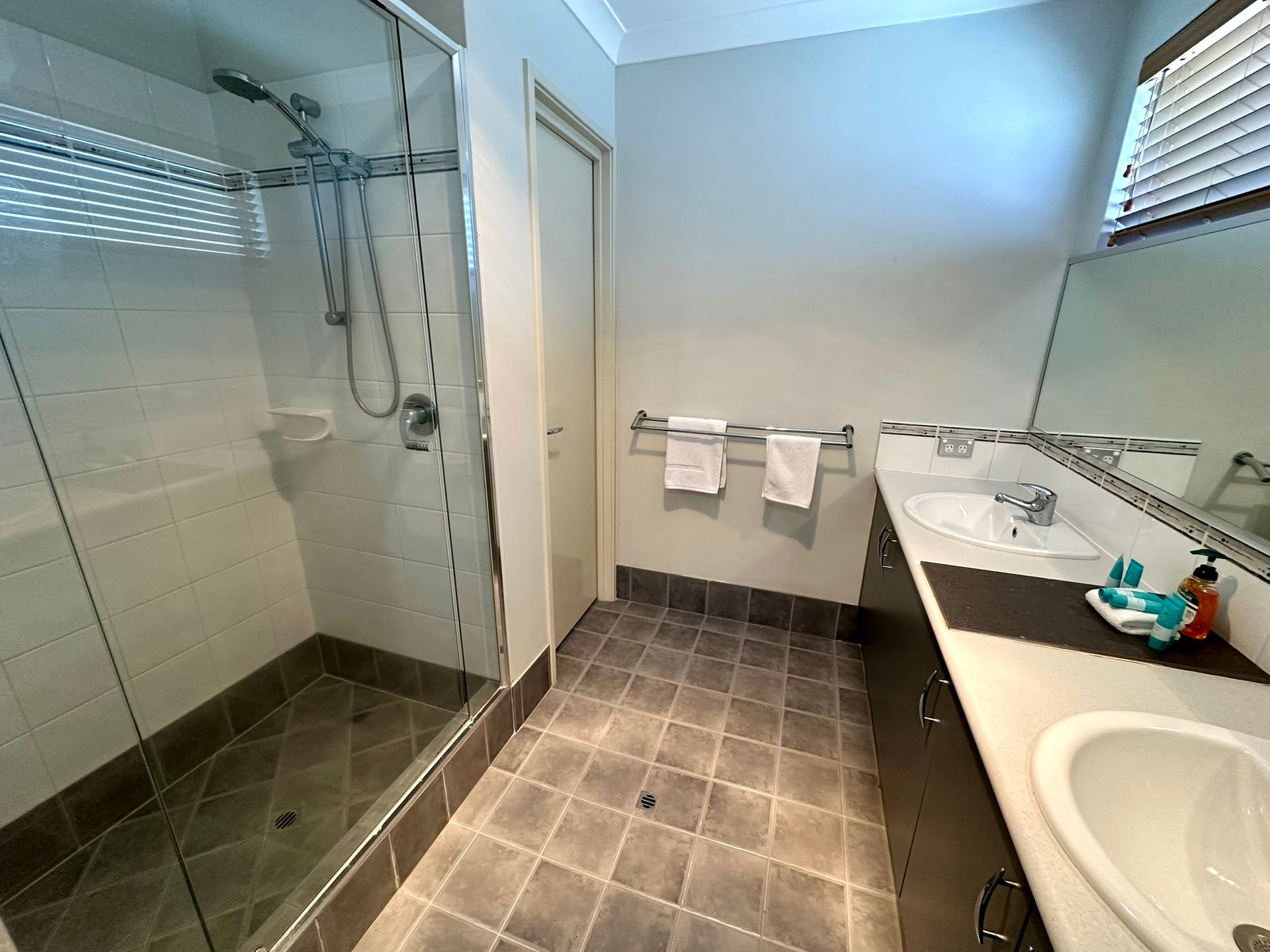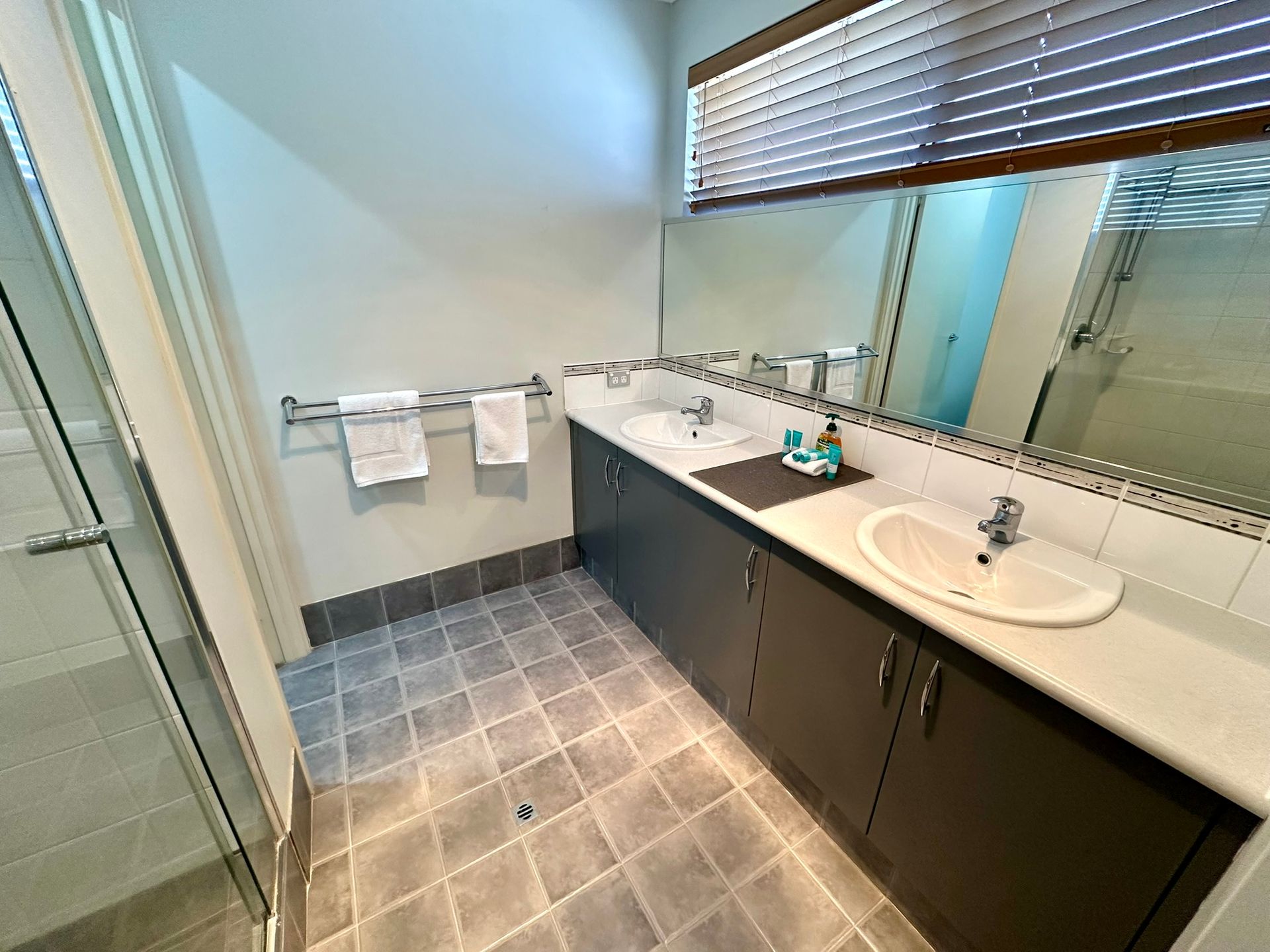 The master bedroom boasts a king-size bed and ensuite bathroom, while the additional bedrooms offer a queen, king single, and twin king single beds, accommodating groups of all sizes.