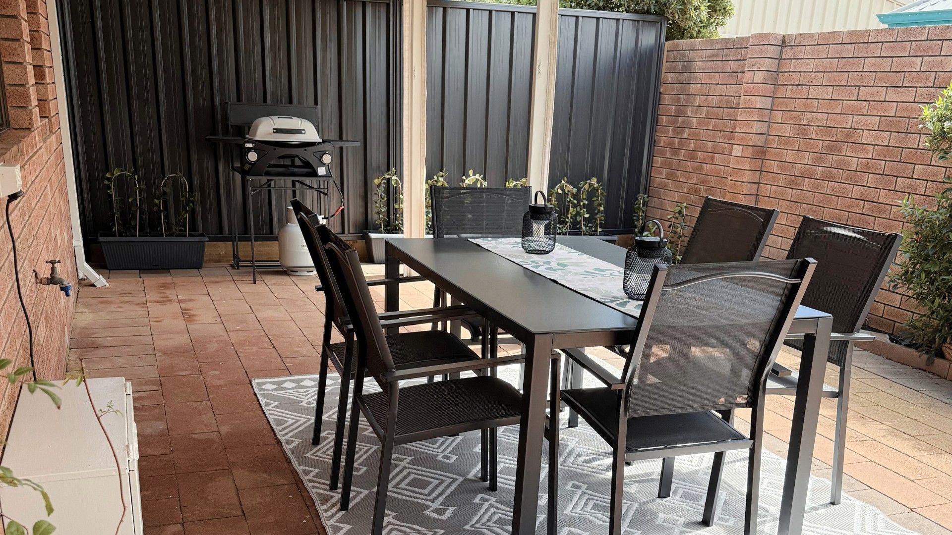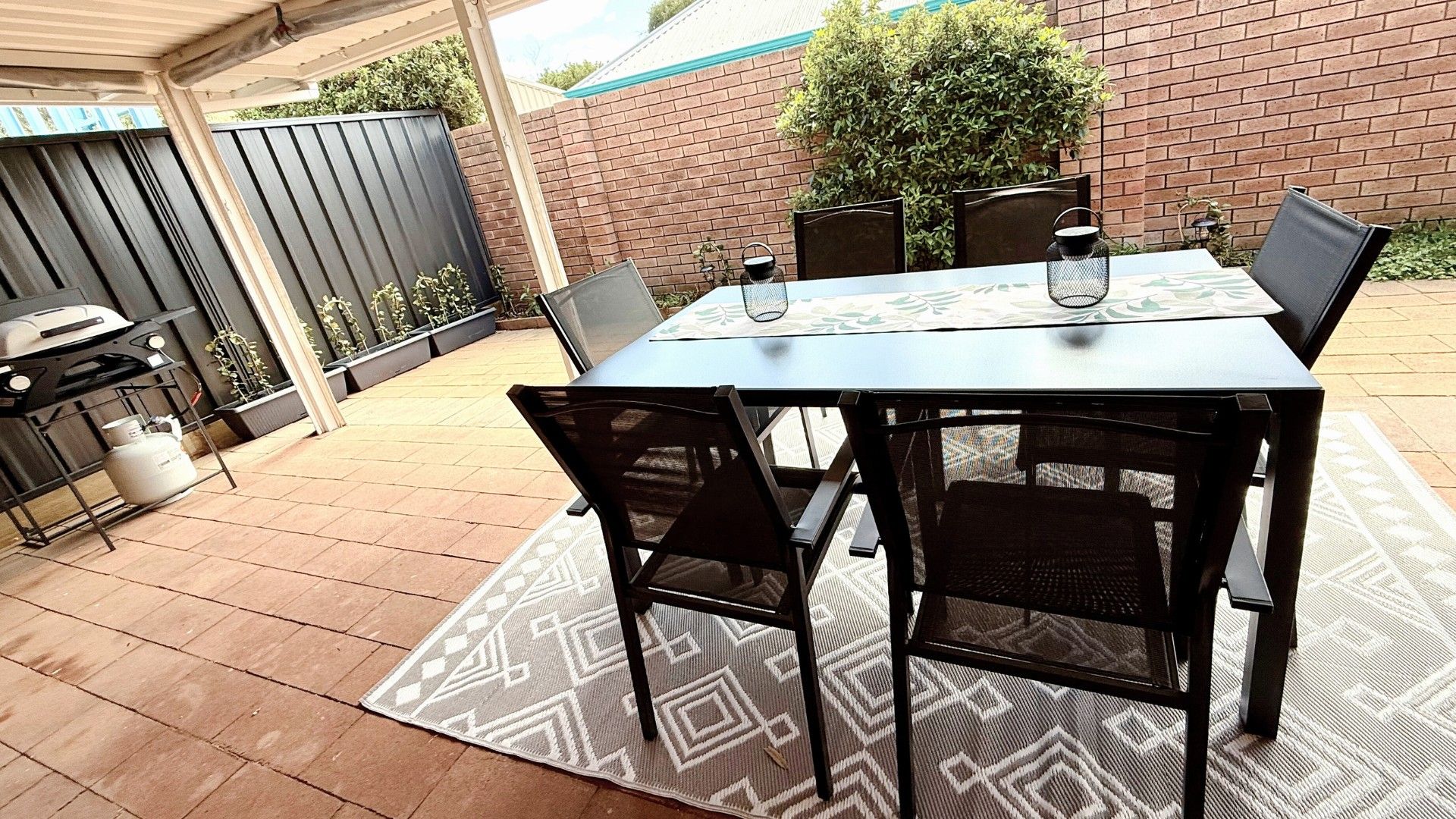 - Covered patio with outdoor seating