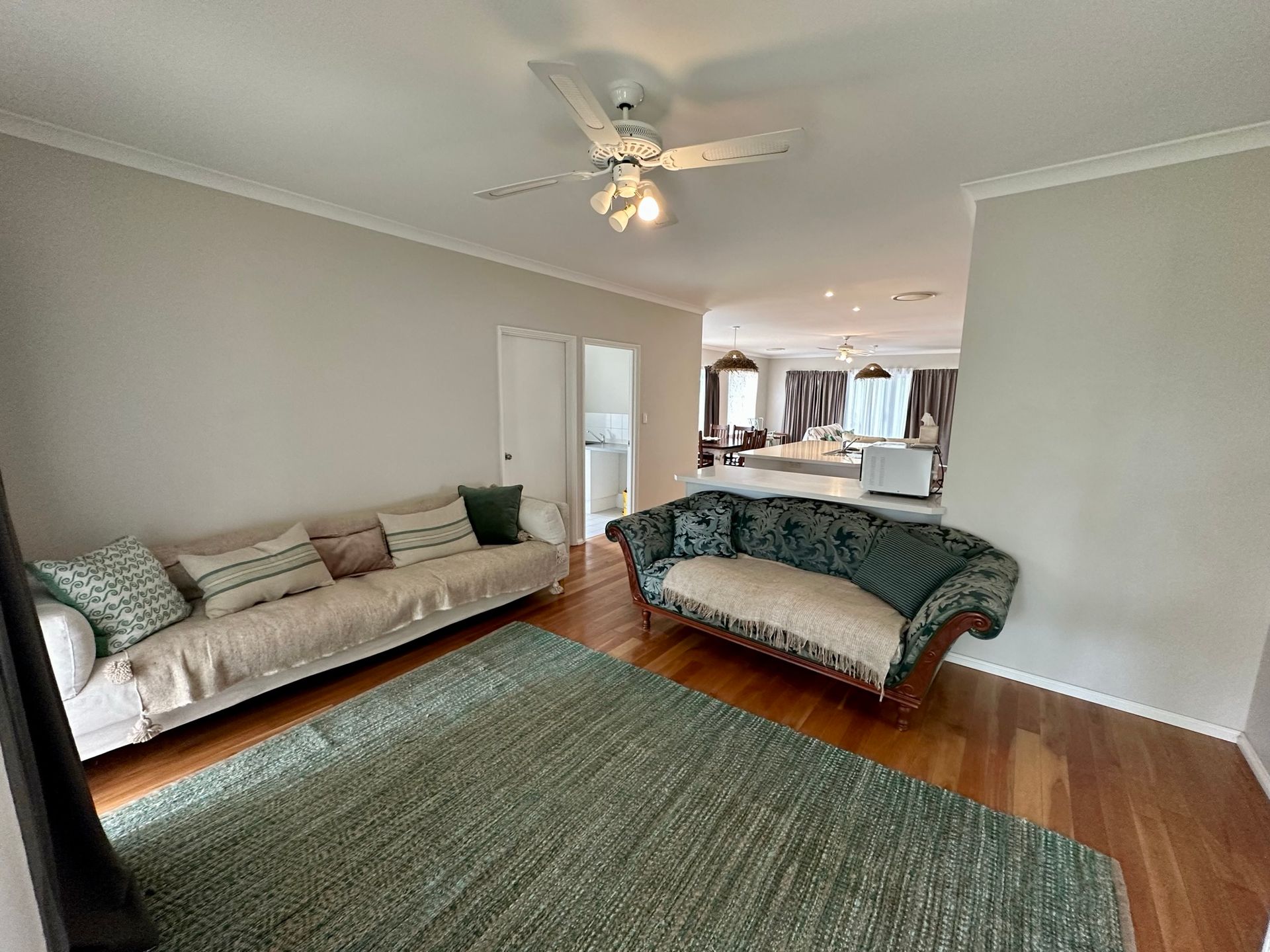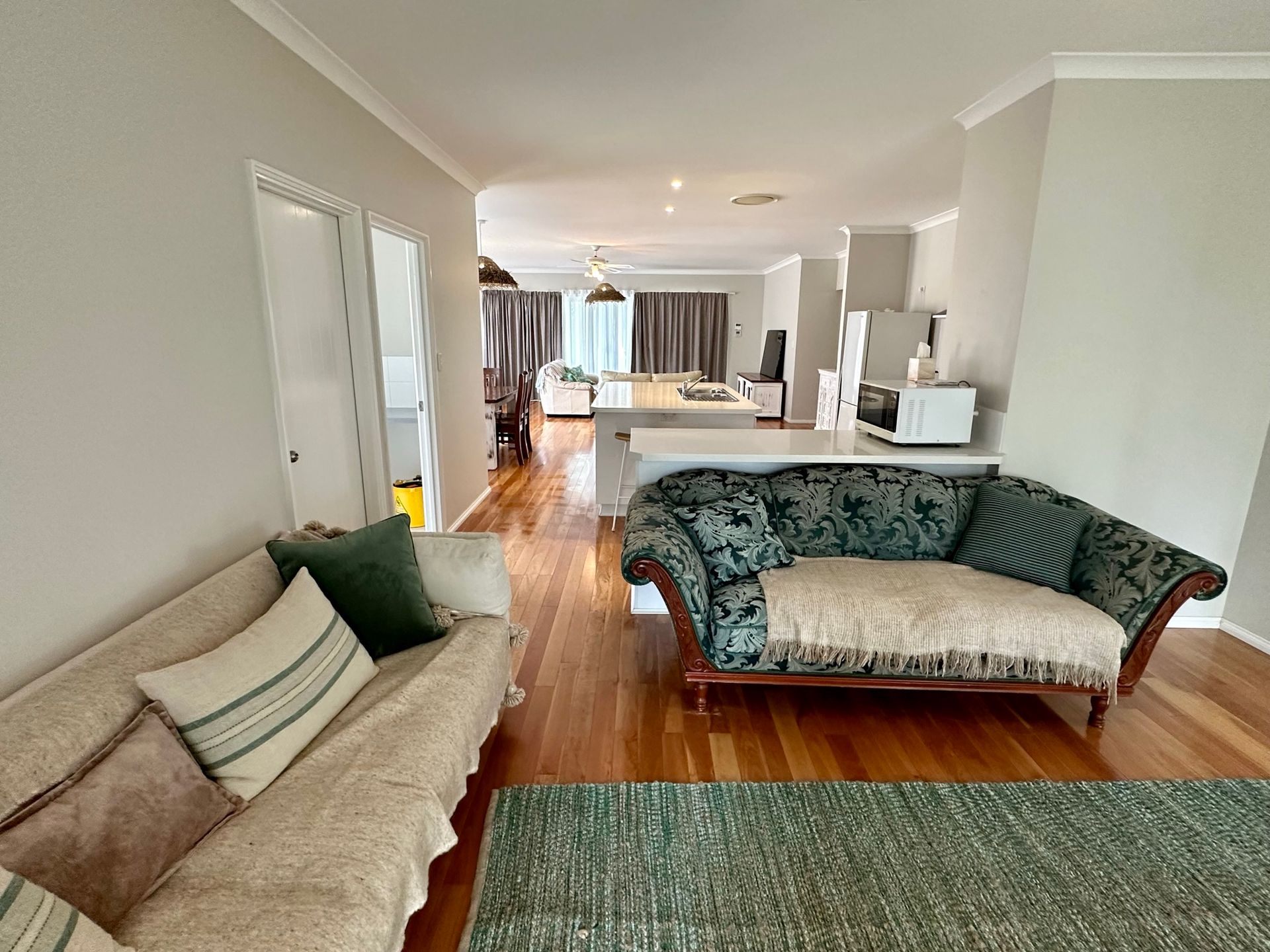 Moving through the front door into open living area, you will encounter an initial small sitting room separate from the main loungeroom that cozy lounge boasting a big screen TV and central heating, thoughtfully added for those chilly evenings. Adjacent to the lounge, a well-equipped kitchen awaits, over-looking both living areas and dining areas complete with a dishwasher and microwave oven, ideal for uninterrupted culinary delights. Beyond that, a dining room awaits where you can enjoy your meals together.
