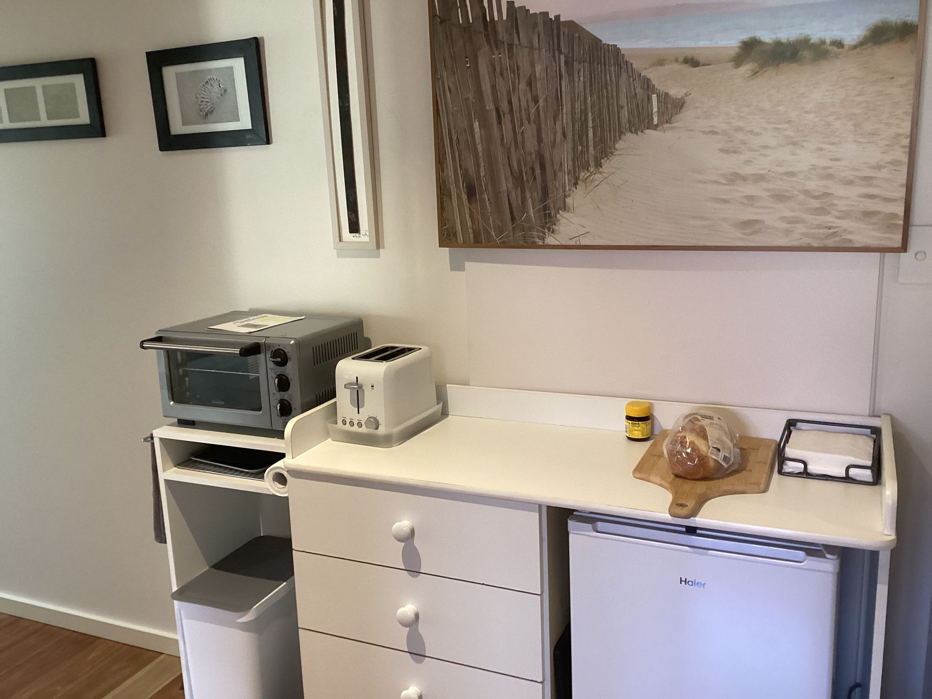 - Fully equipped with essentials, including a coffee machine, kettle, toaster, microwave, oven, and bar fridge