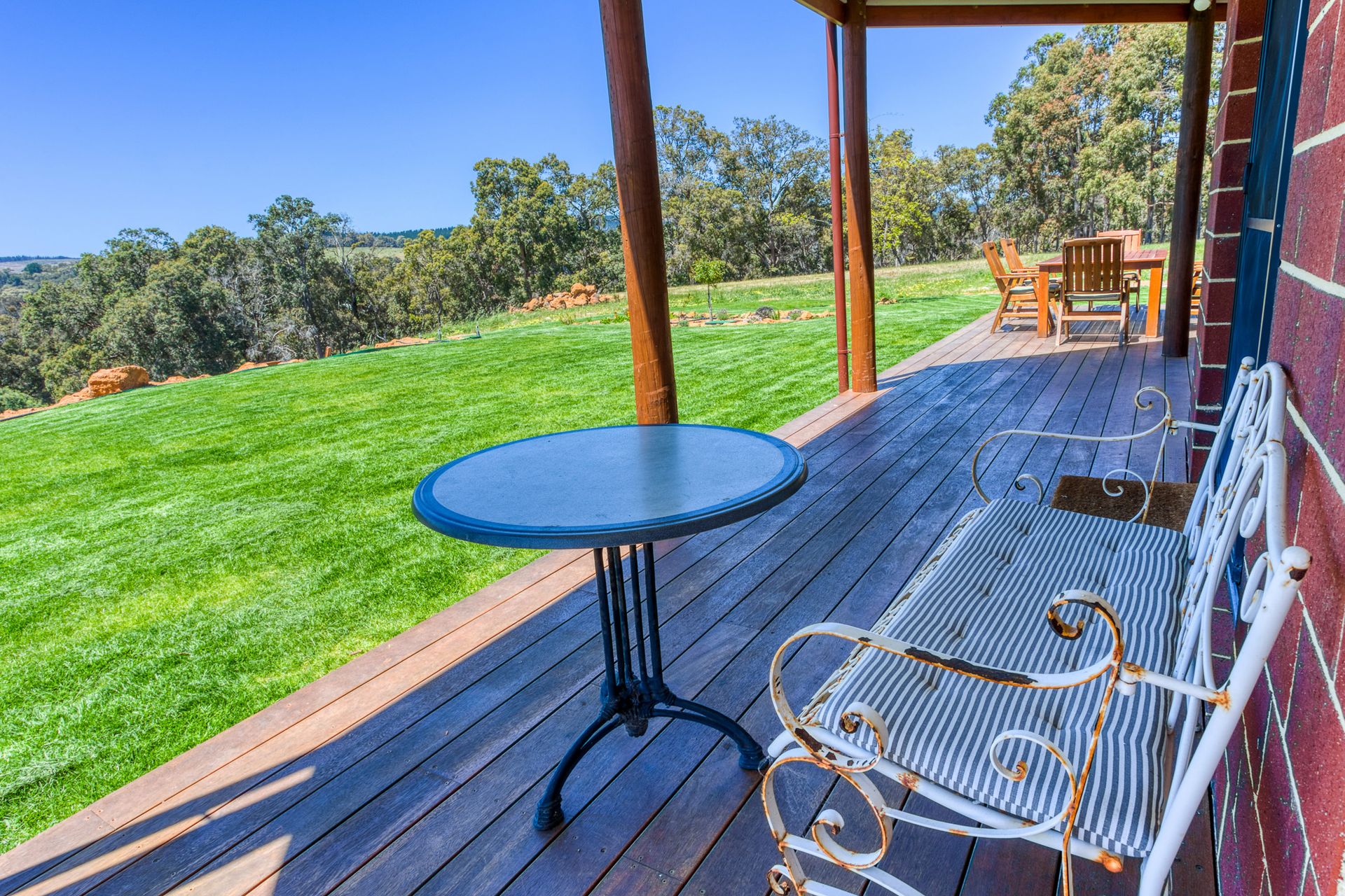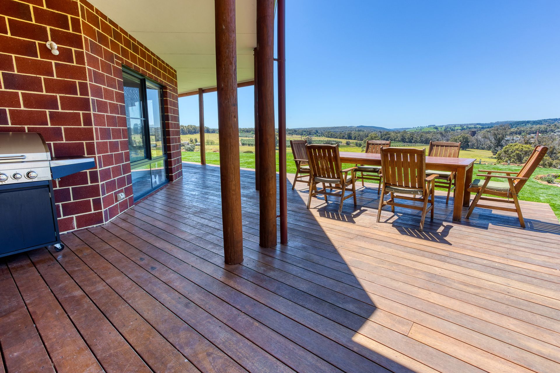 Wander outside to a vast outdoor area complete with stylish outdoor furniture and a gas BBQ, perfect for alfresco dining and enjoying the amazing views over the valley. The porch/deck invites you to sip your morning coffee or evening wine, while soaking in the serene surroundings. .