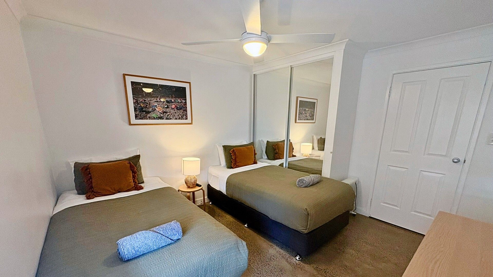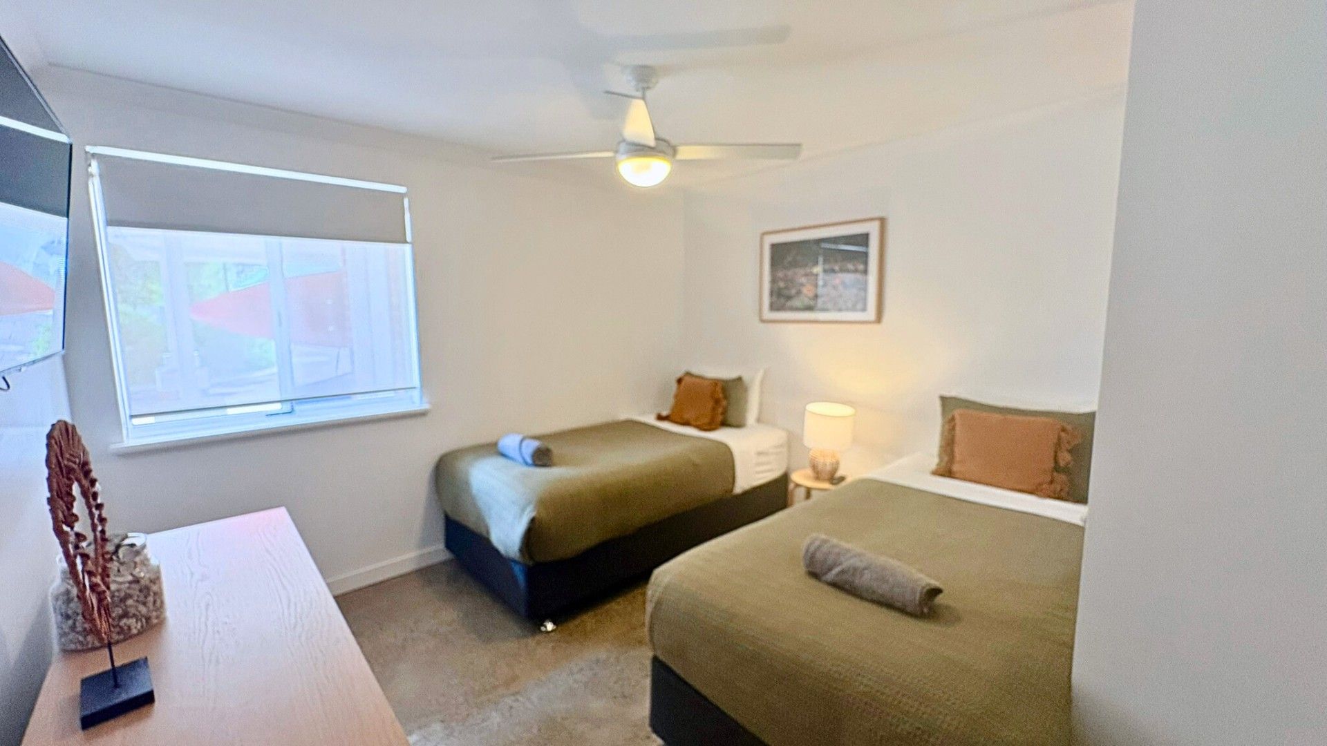 Spread over a spacious open plan living area, our two-bedroom, two-bathroom upscale holiday rental comfortably accommodates four guests, making it an ideal escape for small families or couples. Each bedroom is tastefully adorned with blockout curtains and blinds, promising a peaceful night's sleep. The master suite enjoys the luxury of an ensuite bathroom, assuring absolute privacy.