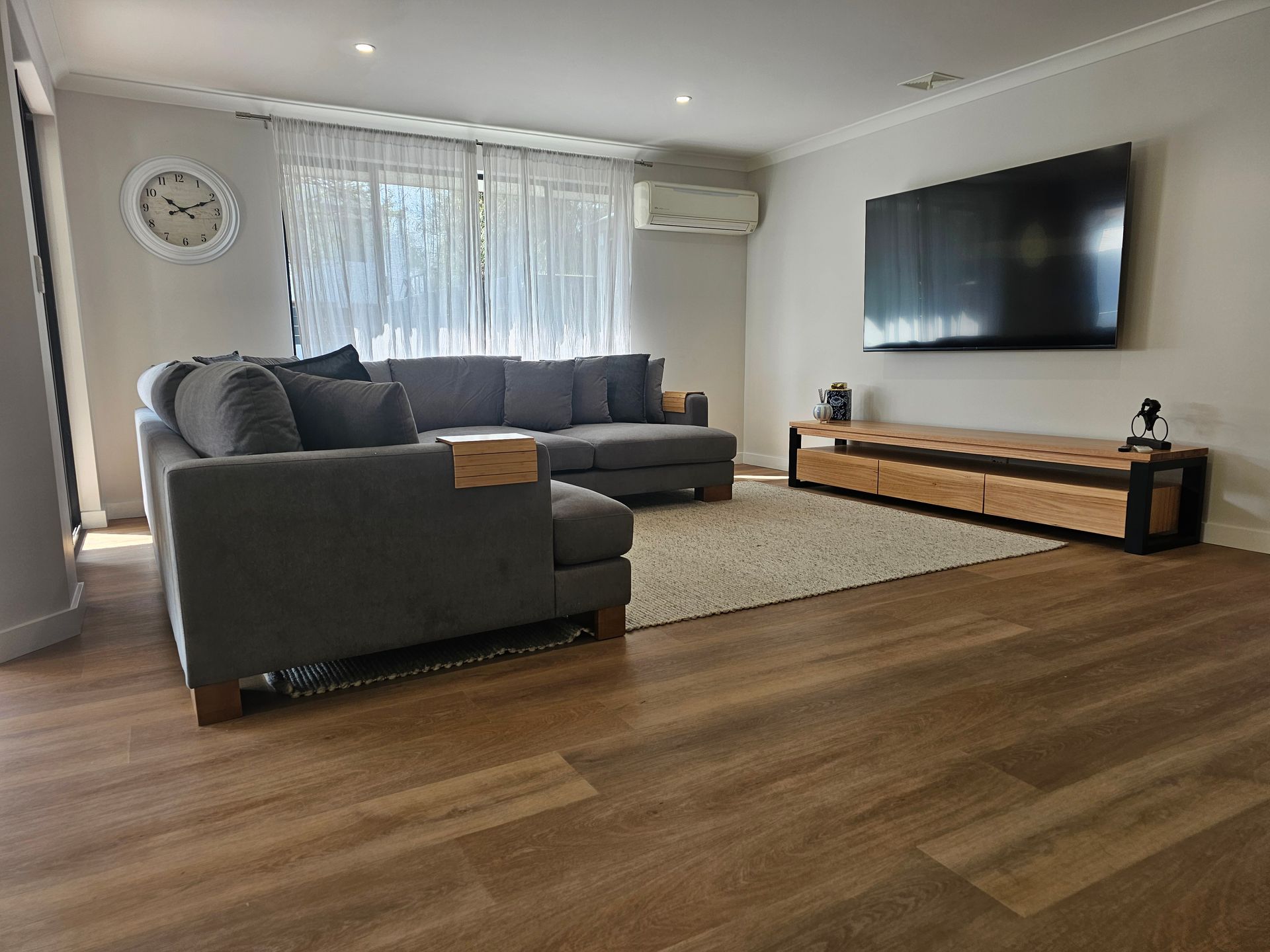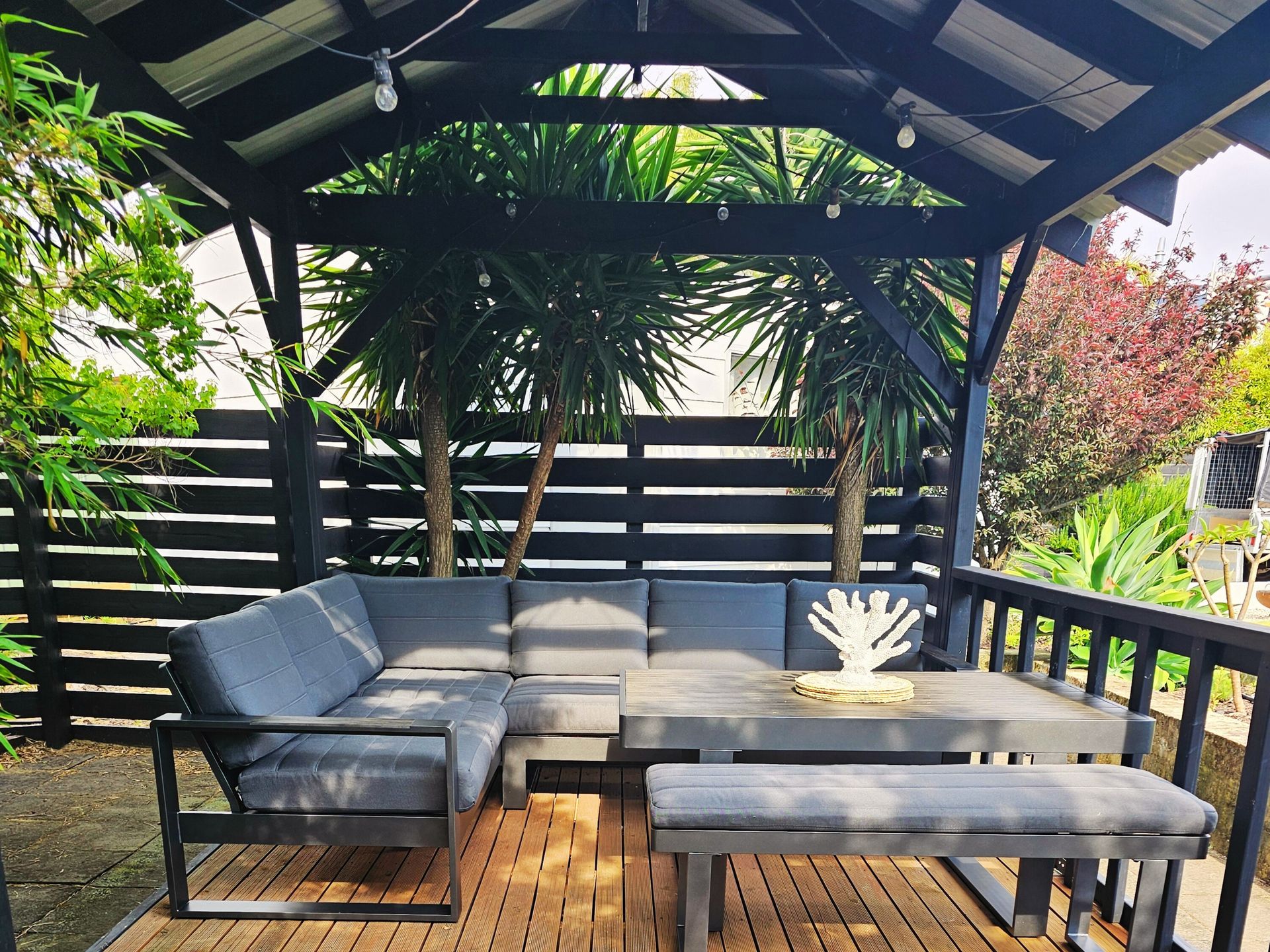 Outside, the garden beckons, with large grass area, covered retreat seating area, home to a Gas BBQ and furnished outdoor space, perfect for laid-back evenings under the stars. A double garage offers ample parking.