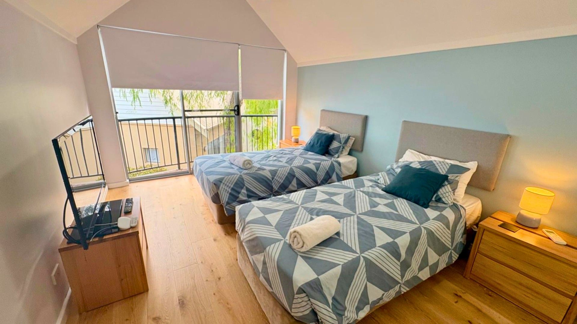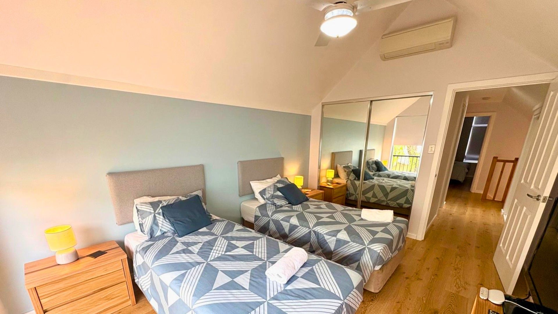 Master bedroom with king bed downstairs with ensuite, with a queen bed and 2 singles upstairs with seconb bathroom.