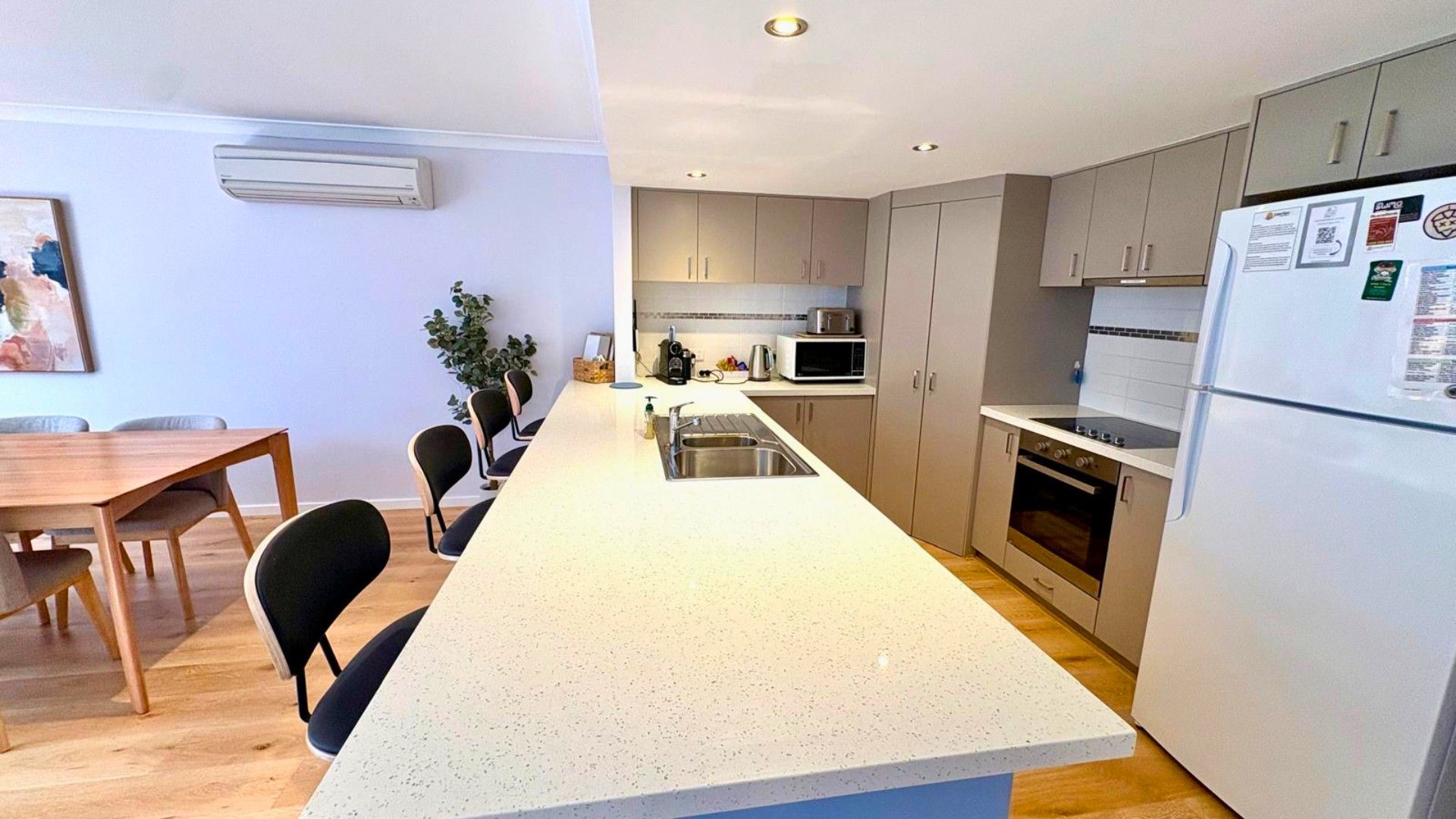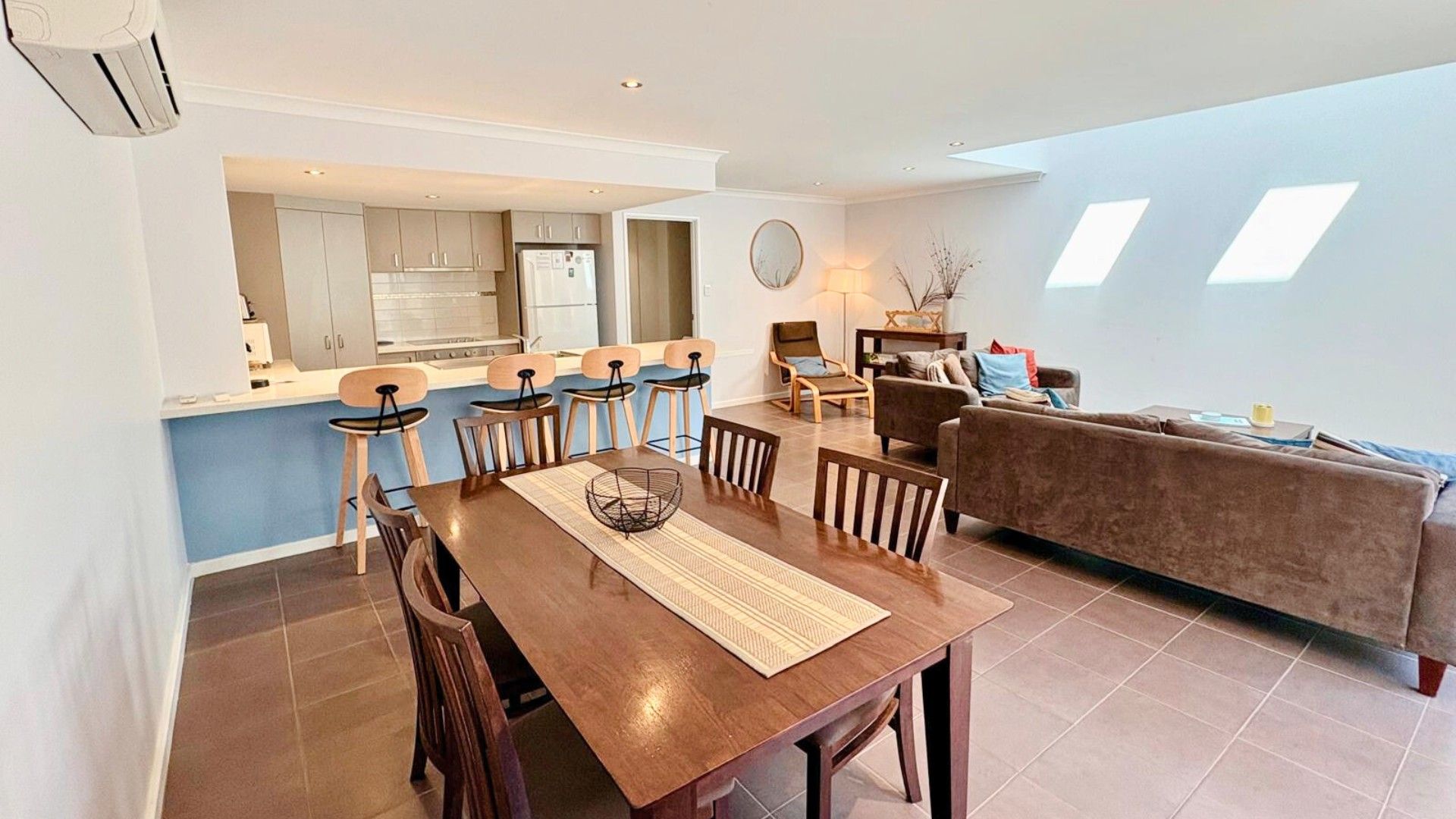 Self contained accommodation including kitchen, dining and living area with reverse cycle air-conditioning in the main living and 2 upstairs bedrooms, modern kitchen, large closets to all bedrooms, bathroom to main bathroom is ensuite, family bathroom has a extra large shower,, 2 separate toilets, patio area with outdoor setting and path with direct access to the pool area.