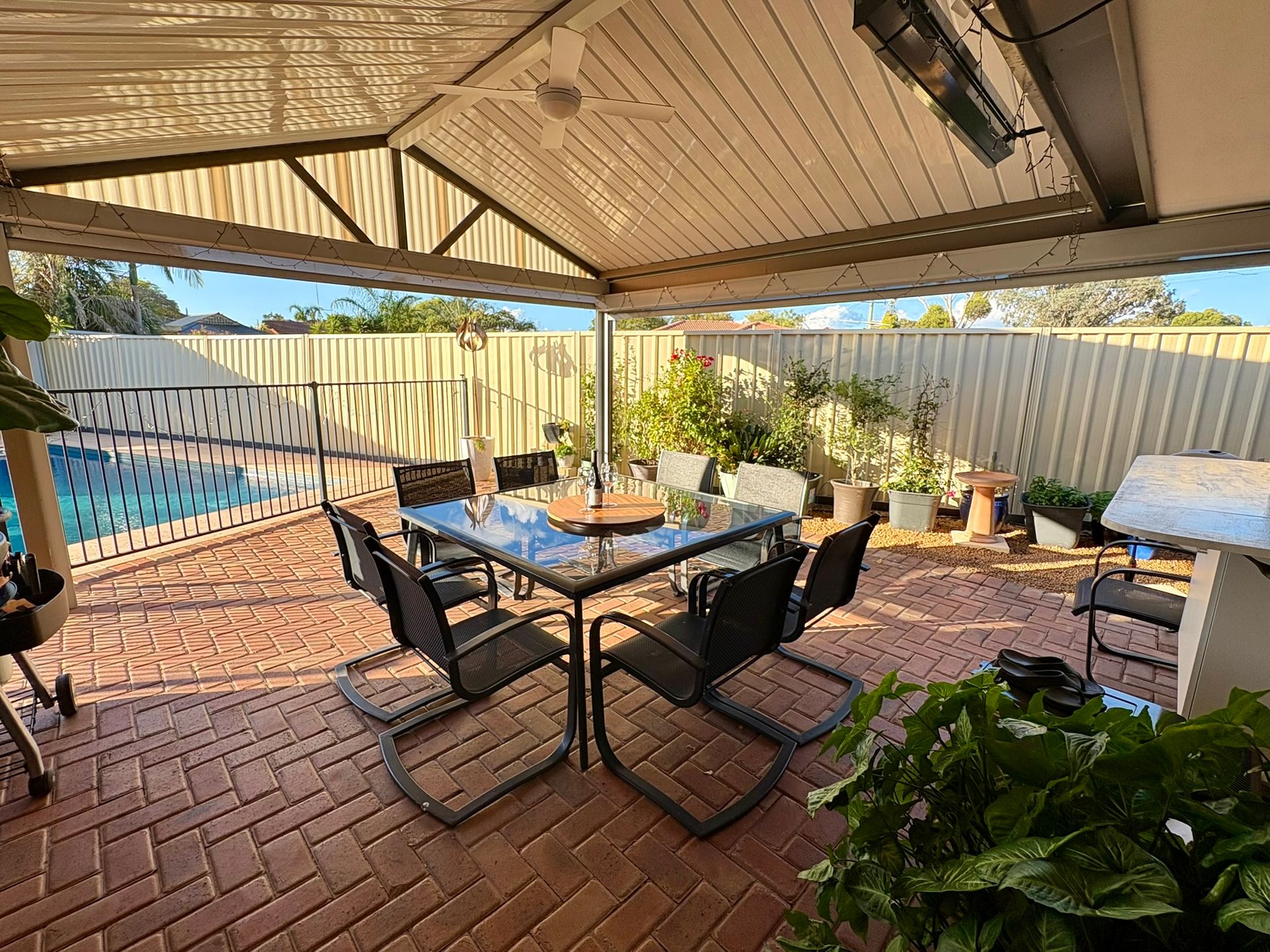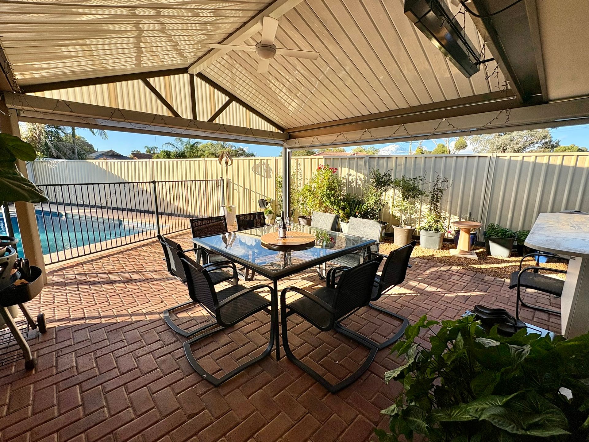 Step outside to enjoy the undercover patio with BBQ and dining setting, complete with weatherproof blinds—ideal for alfresco dining year-round. The enclosed backyard and sparkling pool make it a hit with families and summer guests alike.