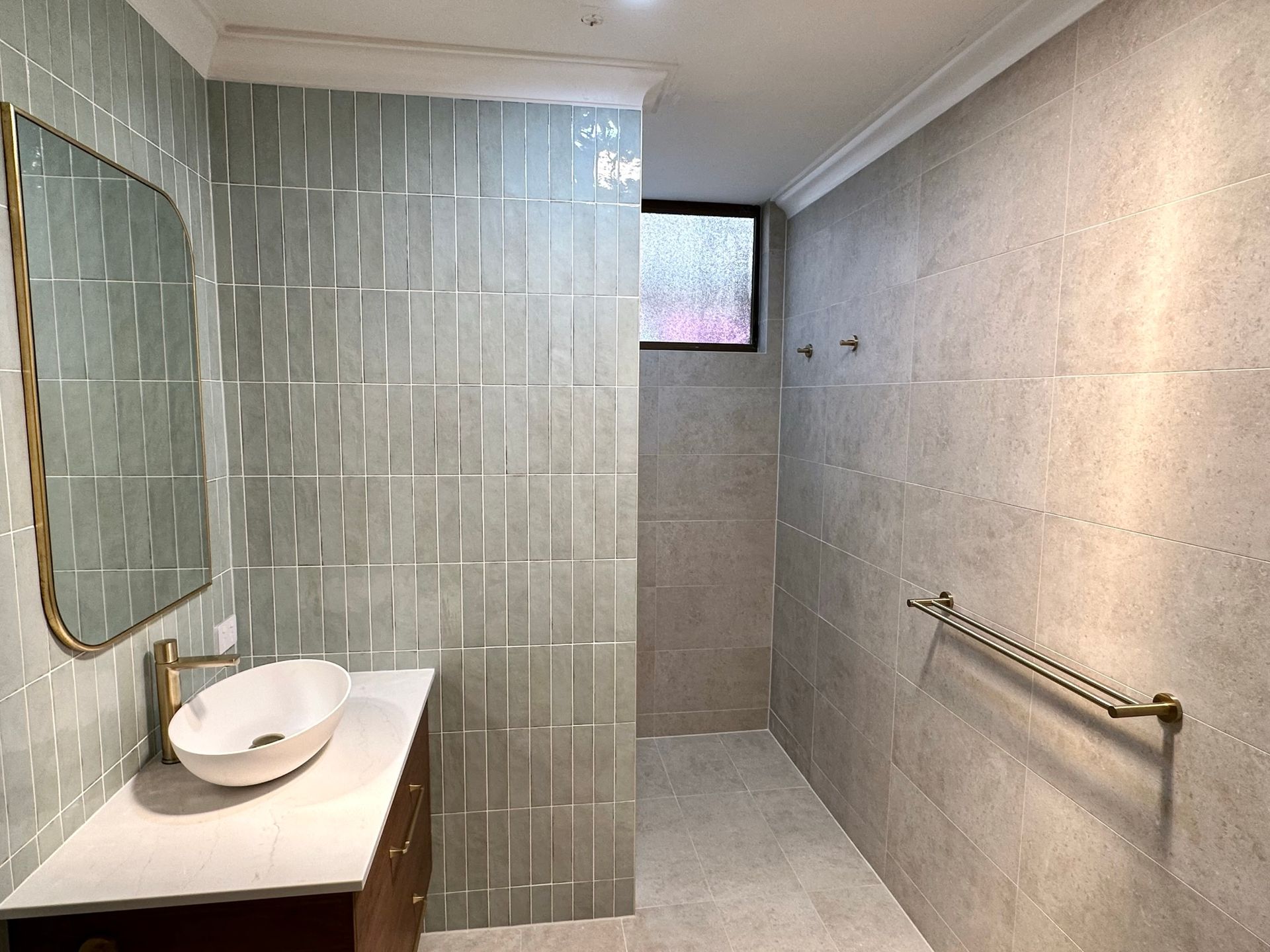 The first floor has 2 bedrooms with a king bed and 2 single beds as well as the large second bathroom with a bath separate from the shower...