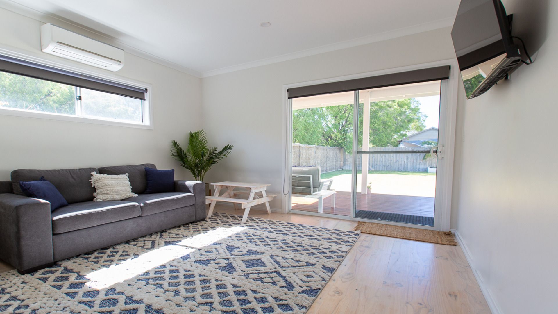 This delightful house ensures entertainment with a grand Big Screen TV in the main living area (a second TV is downstairs) and uninterrupted Wi-Fi connectivity throughout. It also offers spacious living areas, an elegant dining area, and a fully equipped kitchen to cater to your culinary needs. Three split system air conditioners are in place to ensure your comfort and peace of mind.