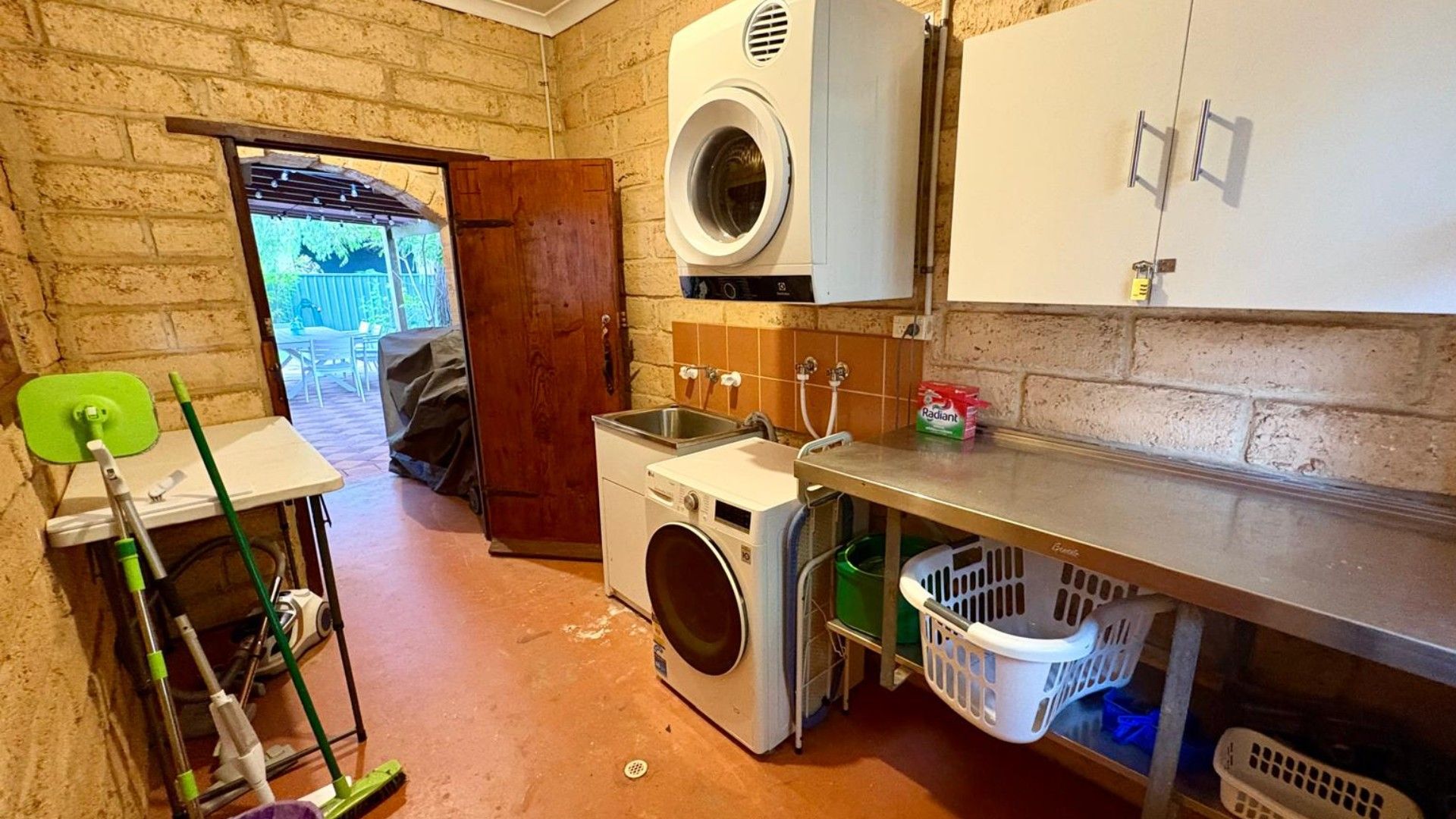 A full laundry is available for guest use, complete with a washer, dryer, and laundry sink. The laundry has convenient access from both the undercover patio area and the carport, making it easy to manage washing during your stay.