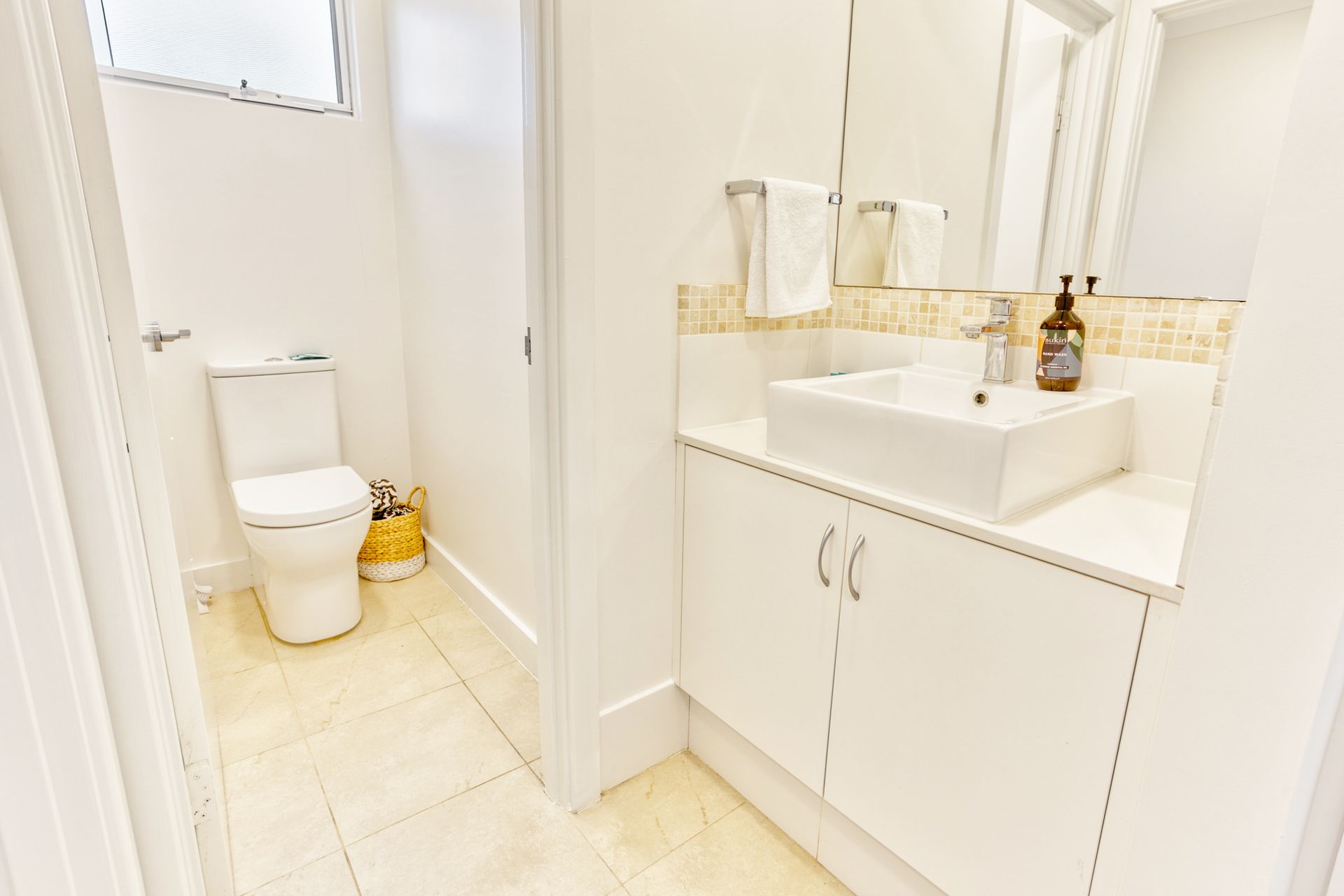 • Bathrooms: Family bathroom conveniently located downstairs, plus a master suite upstairs with its own ensuite. An additional powder room is also available.
