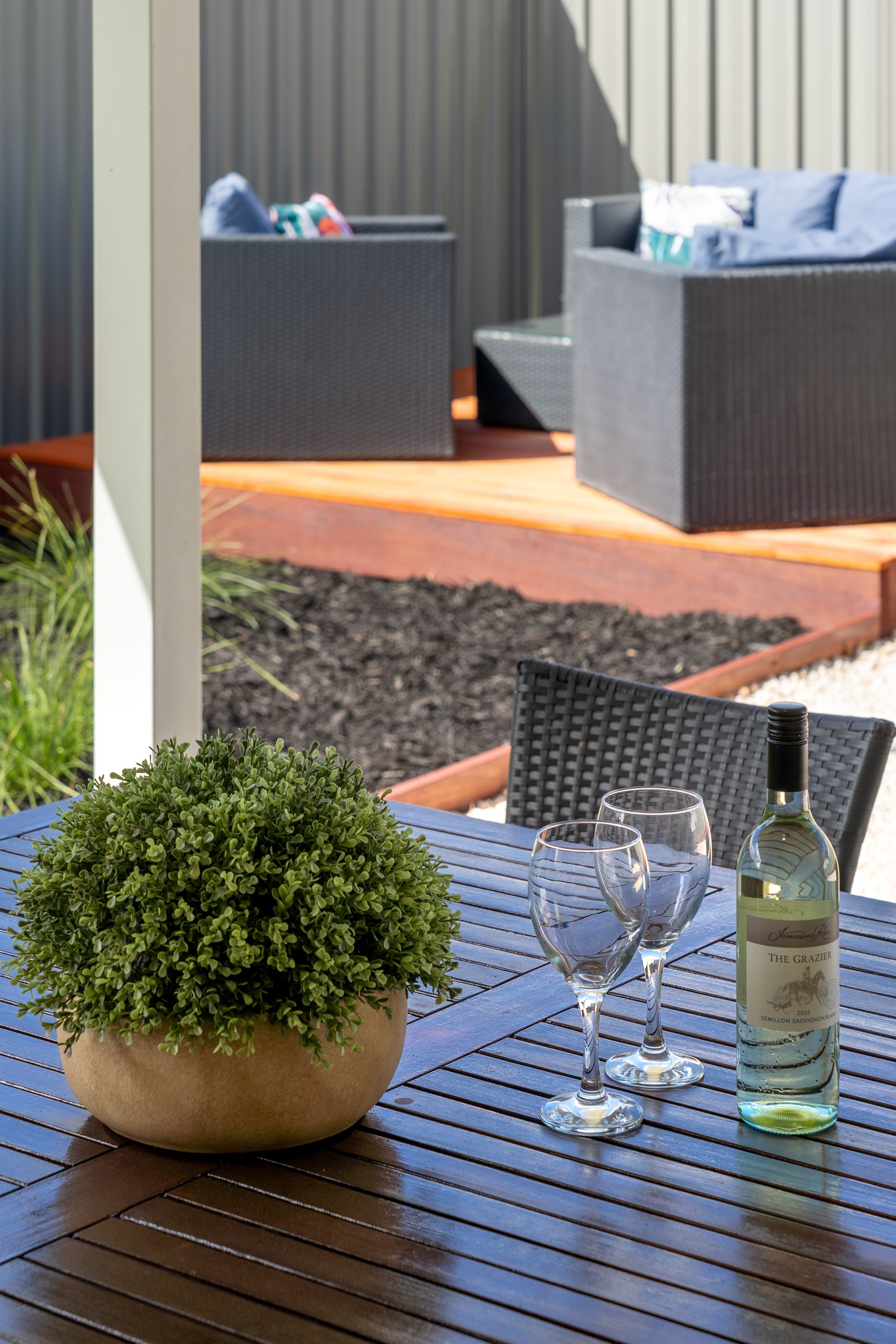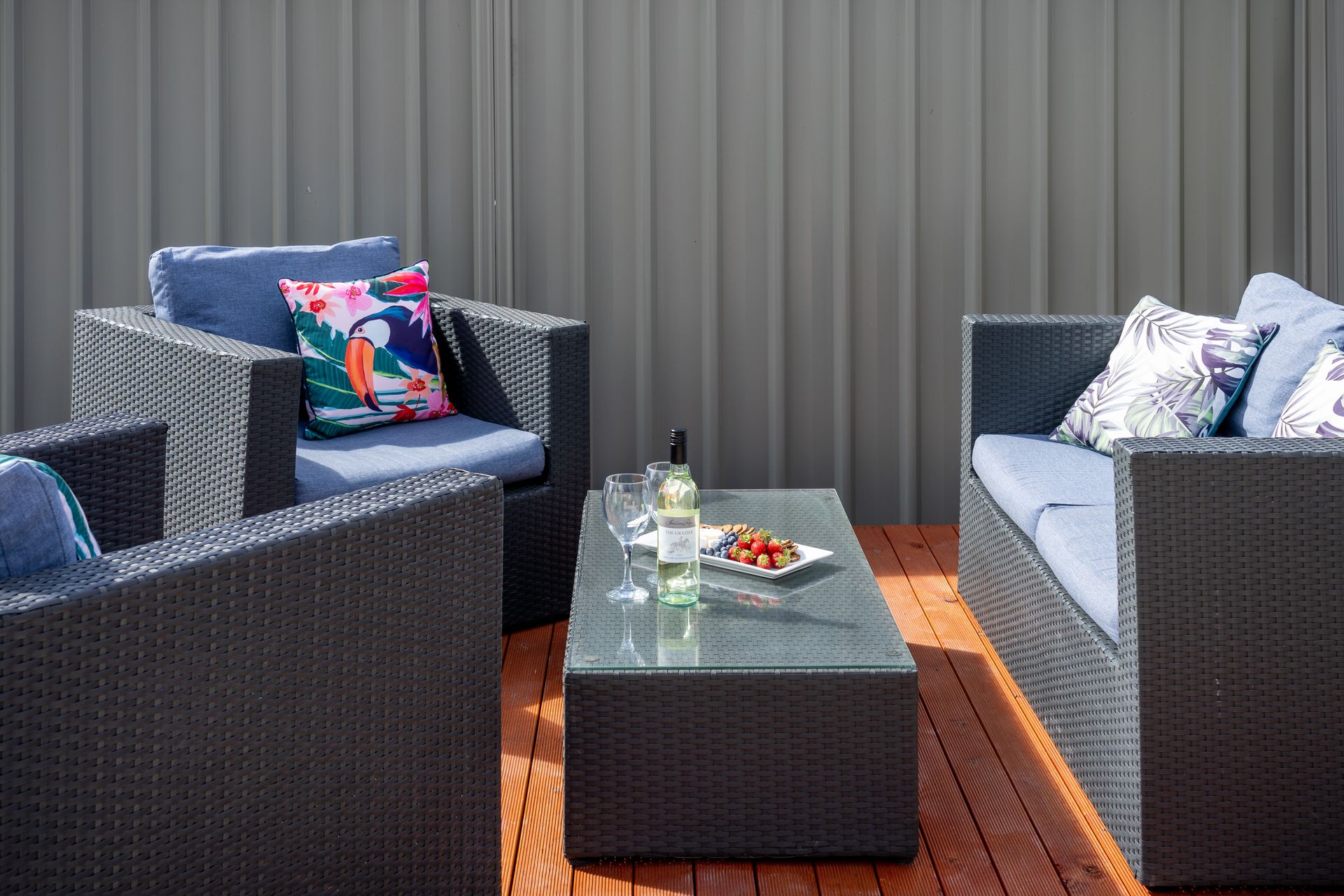 Start your day with a coffee on the alfresco patio, complete with a dining area for 8, or kick back on the sun-soaked deck, ideal for an afternoon drink and relaxation. For families, the addition of a high chair ensures that even the youngest guests are comfortably accommodated.